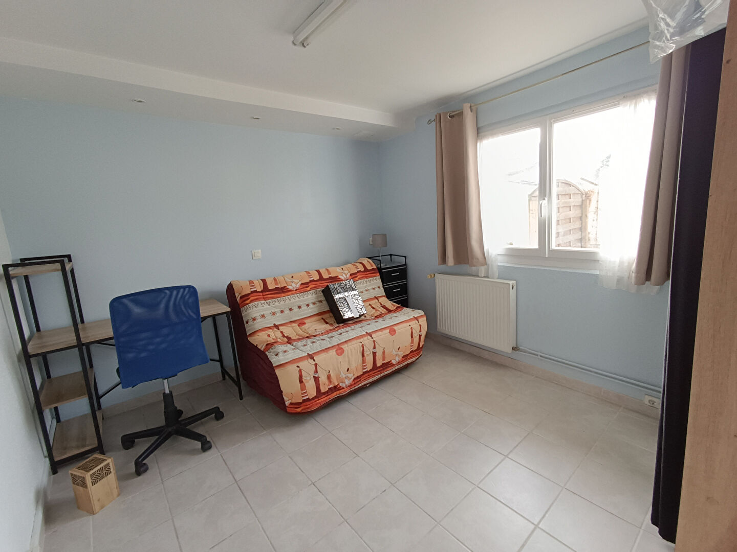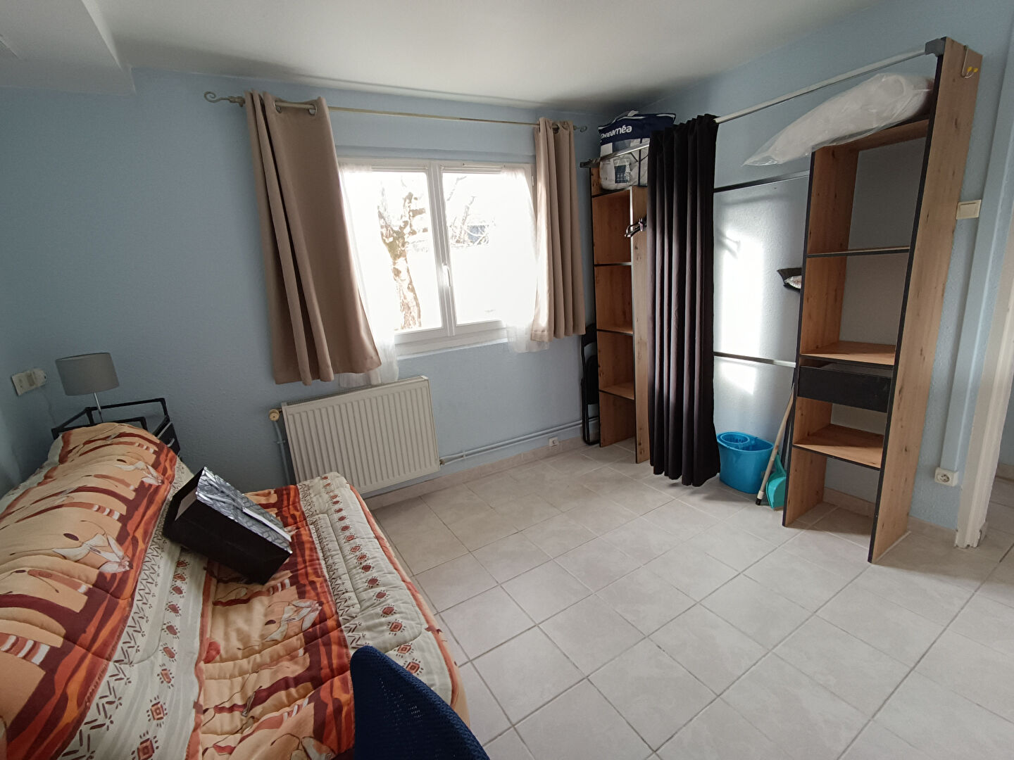 Il se compose d'une cuisine aménagée et équipée (plaque, frigo), une salle d'eau avec WC et une pièce à vivre.