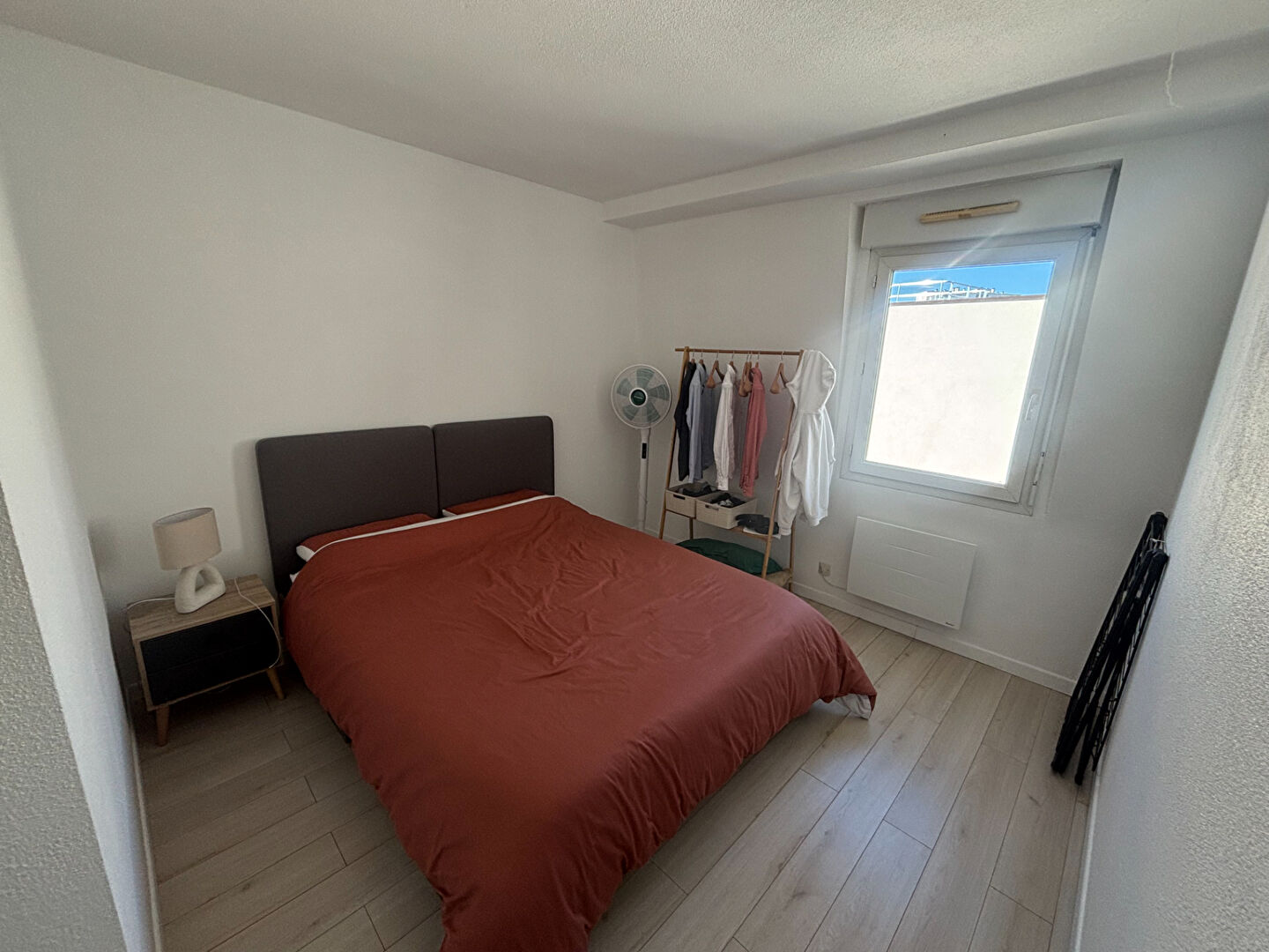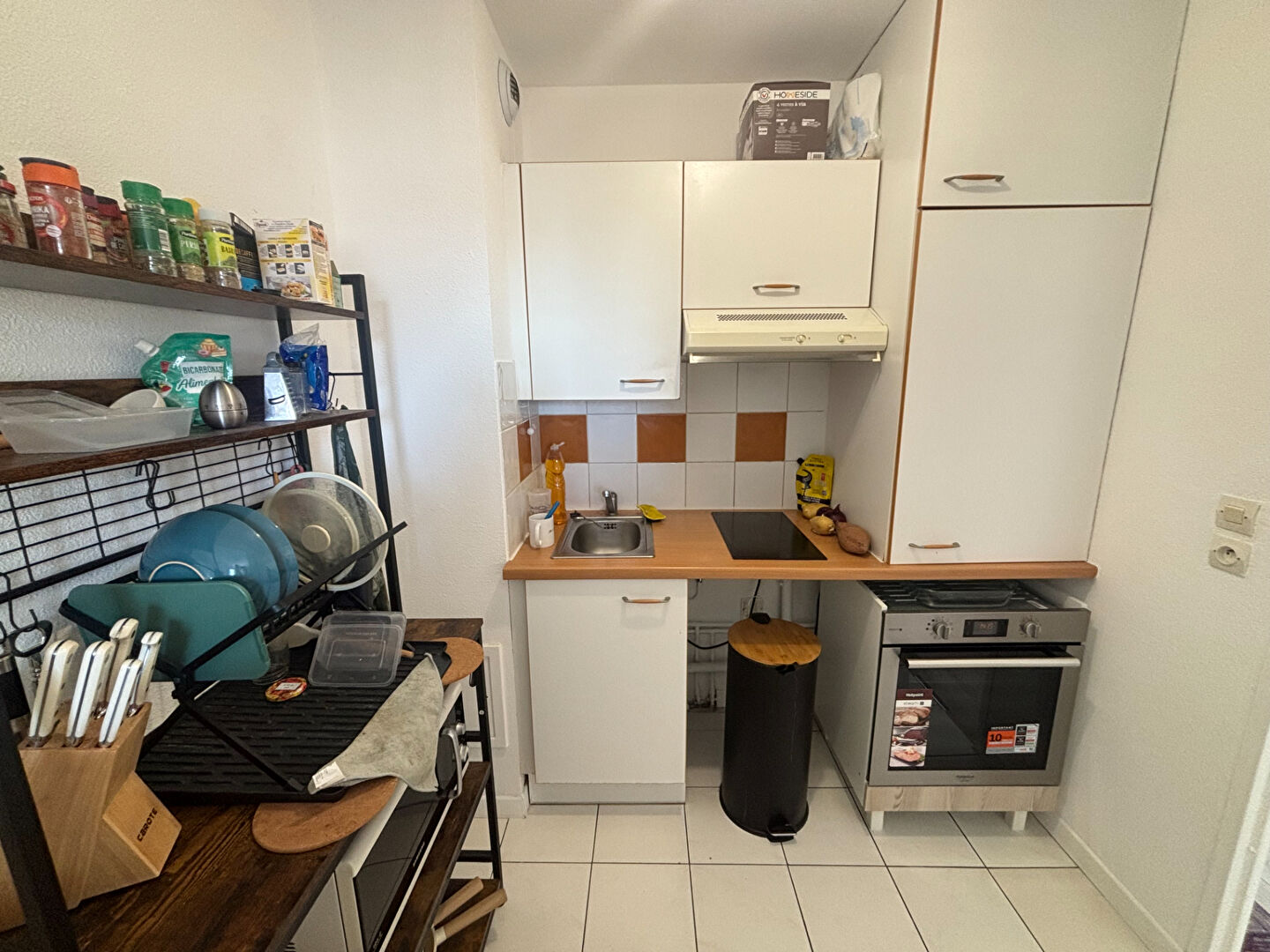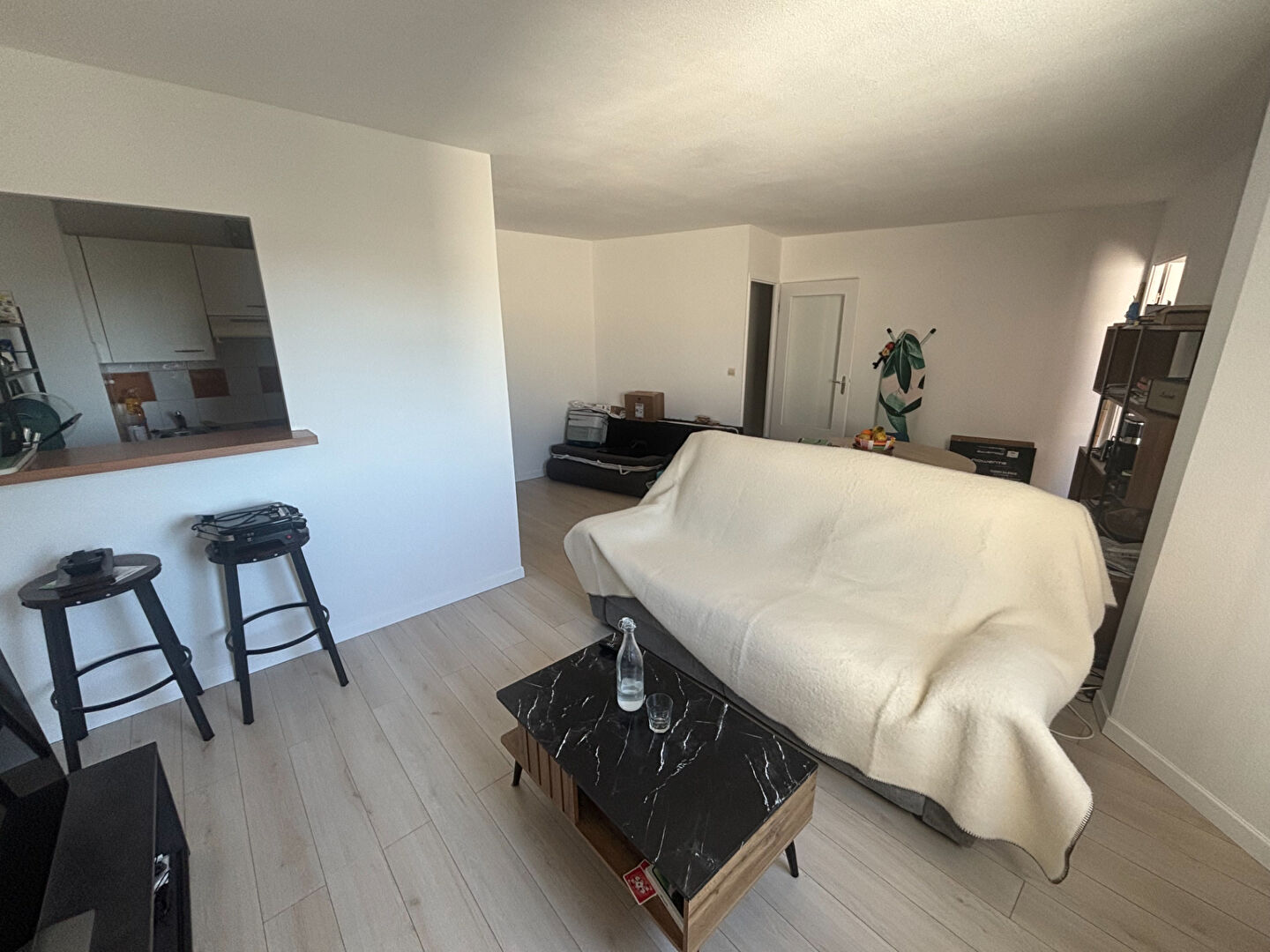 Appartement type 2 au 3eme et dernier étage, comprenant une entrée, un séjour, cuisine aménagée et équipée (plaque, hotte), une chambre, une salle de bains.