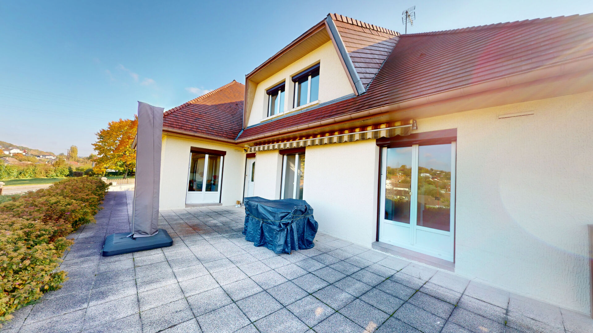 Elle bénéficie de deux terrasses. Le terrain du bien s'étend sur 1 400 m².