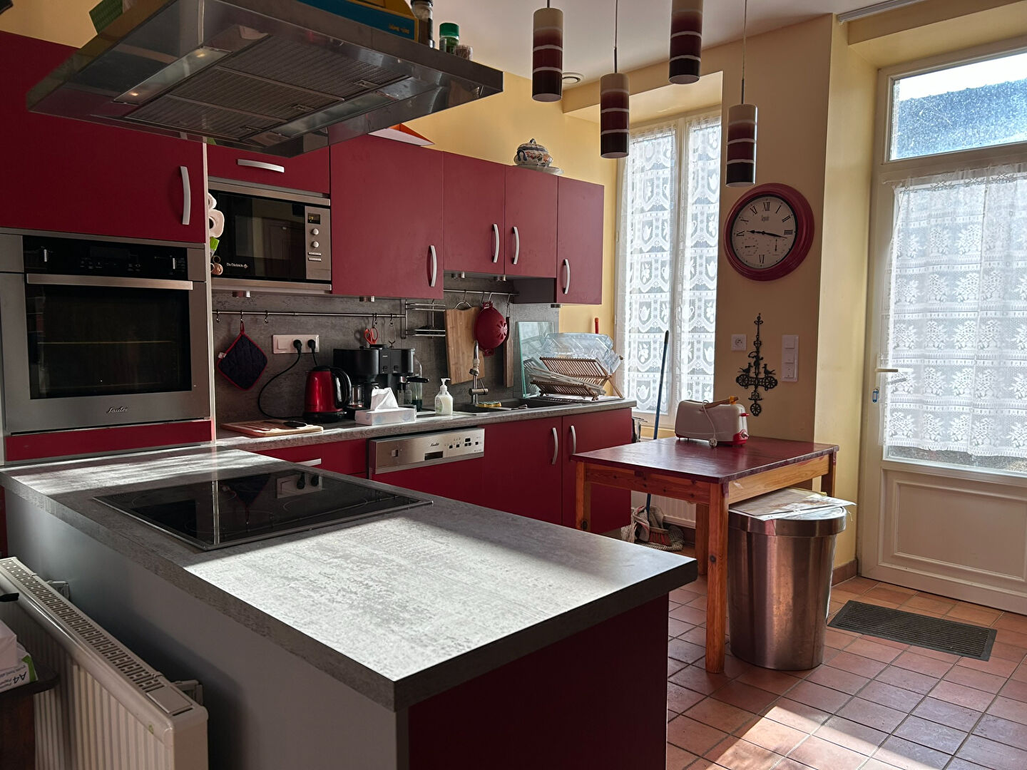 La propriété comprend également une grange attenante avec grenier aménageable, un jardin à l'arrière, une cour centrale ainsi qu'un porche avec portail ouvrant sur la rue. De nombreux espaces de vie lumineux, des cuisines ouvertes, des poêles à bois et des salons à l'esprit atelier ou scène de théâtre viennent compléter l'ensemble.