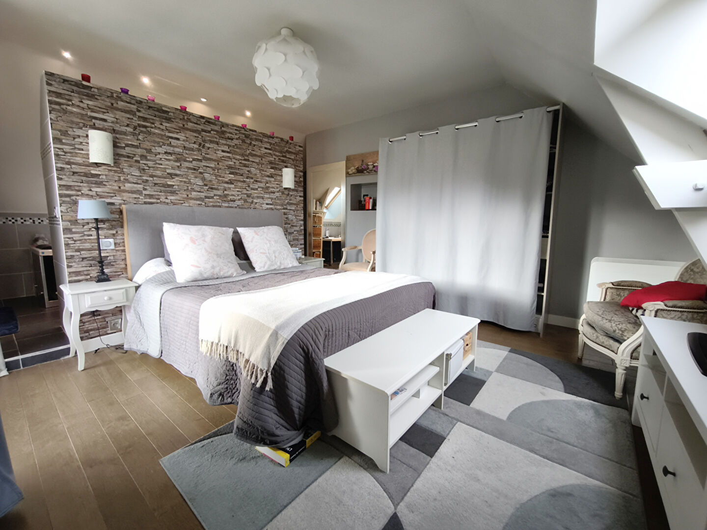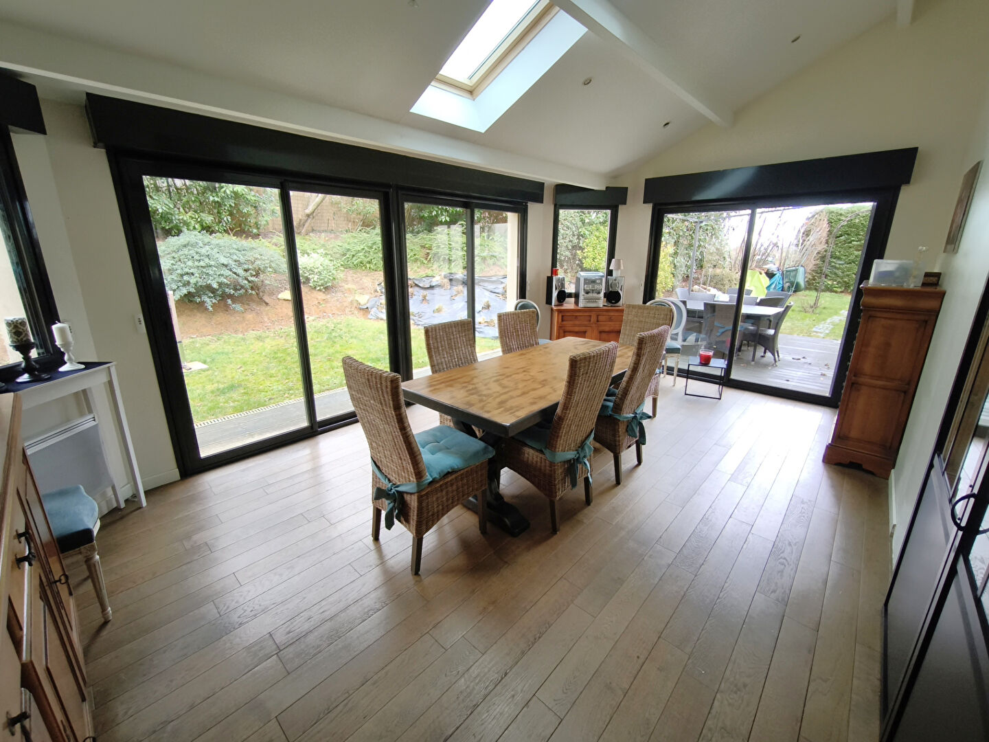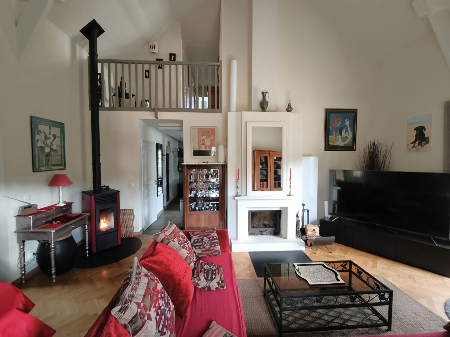 Exclusivité Laforêt. Située dans un environnement privilégié, entourée de champs et forêts, au calme d'une impasse, tout simplement exceptionnel ! Cette magnifique propriété de 160m² est bâtie sur un terrain clos et arboré de 1574m² divisibles sans vis-à-vis et comprenant sur deux niveaux : grande entrée, salon-salle à manger de 48m² avec poêle à granulés et cheminée traditionnelle, une belle cuisine équipée, un WC, une chambre avec salle de douches au rez-de-chaussée. A l'étage : dégagement avec placards, une grande suite parentale avec salle bains balnéo, balcons et rangements, deux chambres avec placards, un WC et une salle de bains.