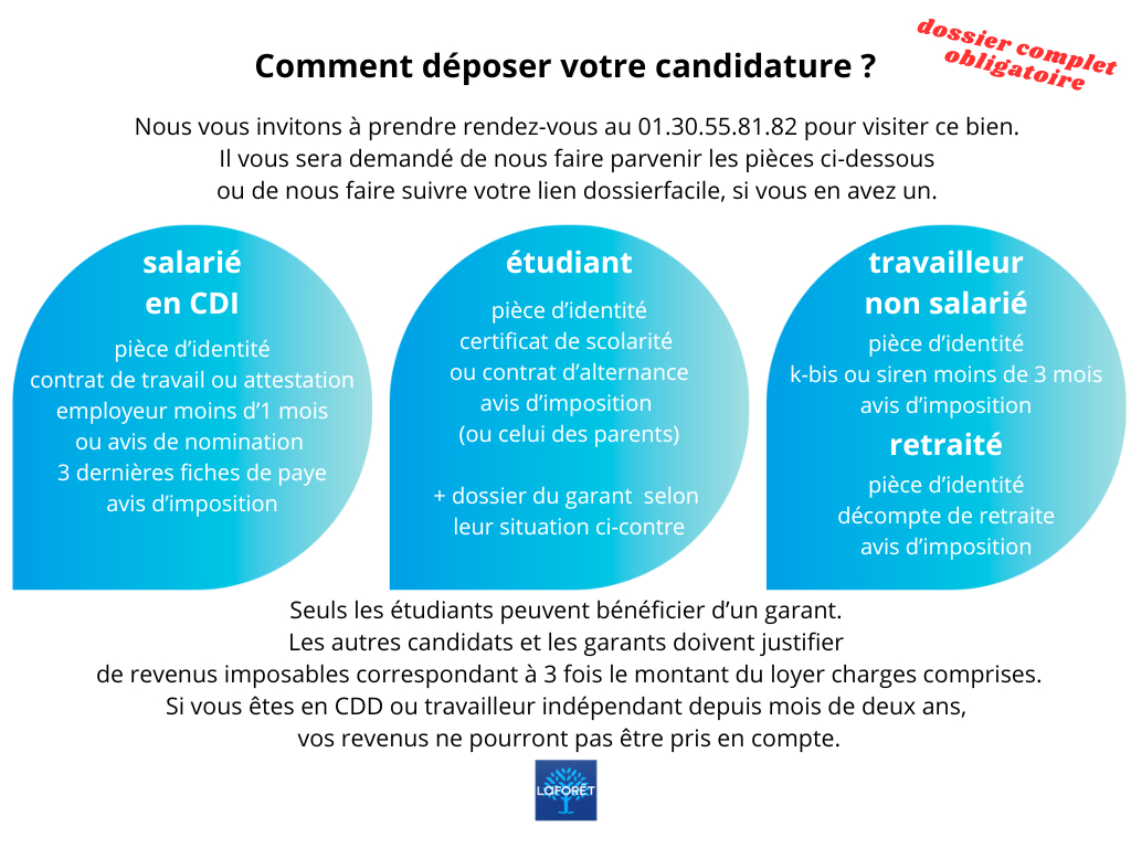 N'hésitez pas à constituer votre dossier via "DossierFacile", un service numérique de l'État qui permet la constitution d'un dossier de location conforme et sécurisé". Les demandes comportant un lien "DossierFacile" seront traitées en priorité.