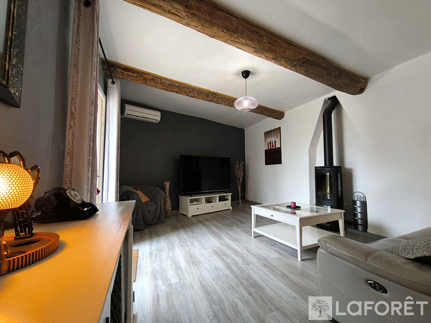 Le confort est assuré par des huisseries PVC double vitrage, une pompe à chaleur air/air et un poêle à bois dans le salon.