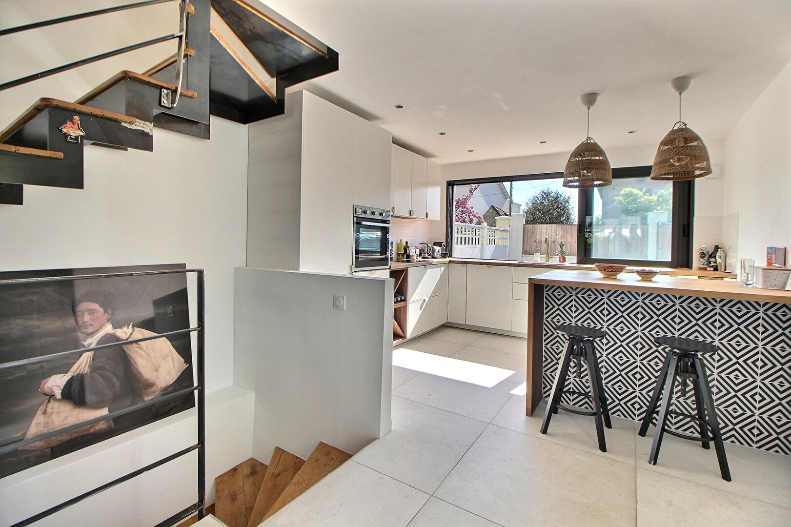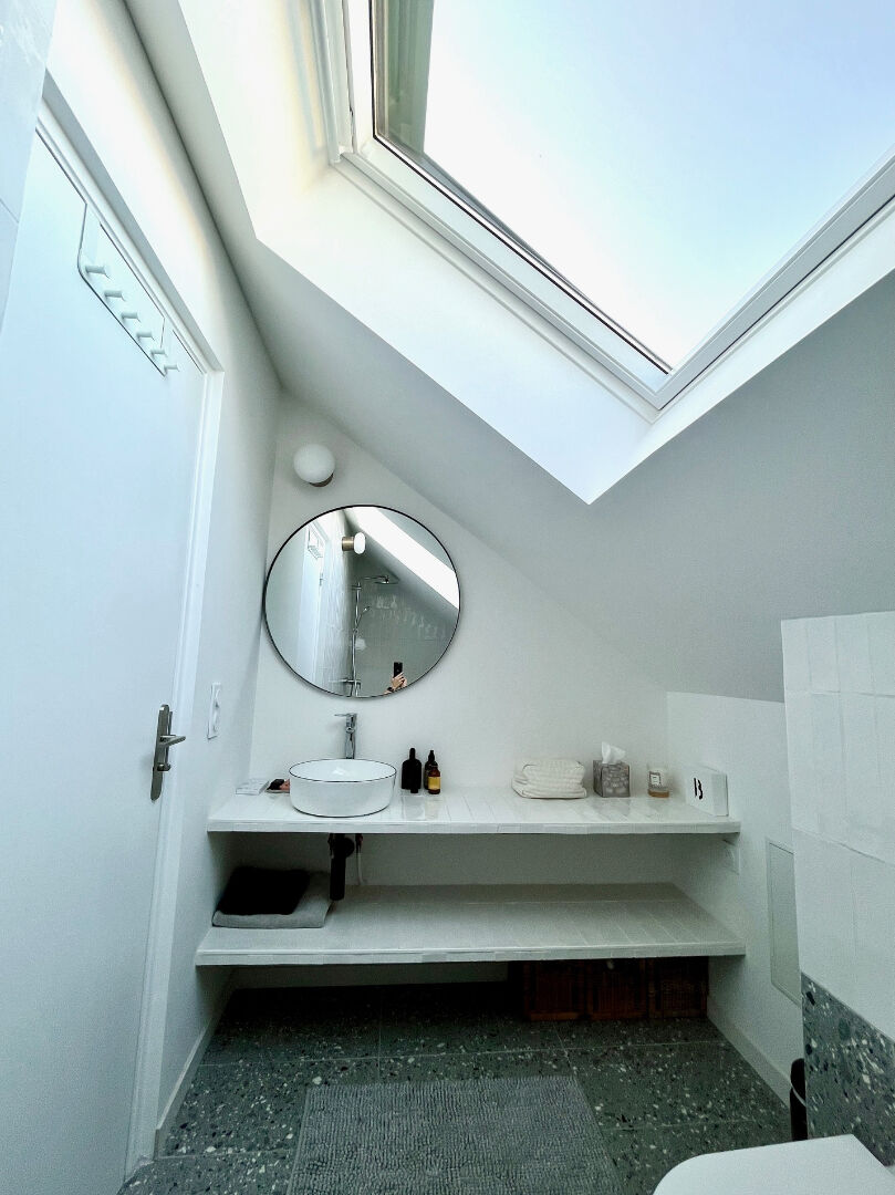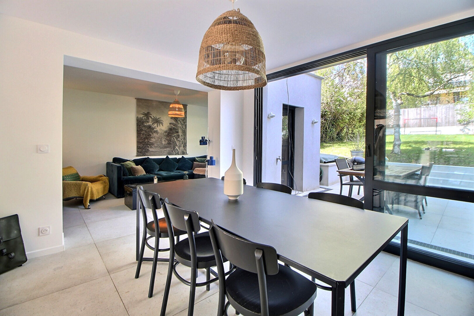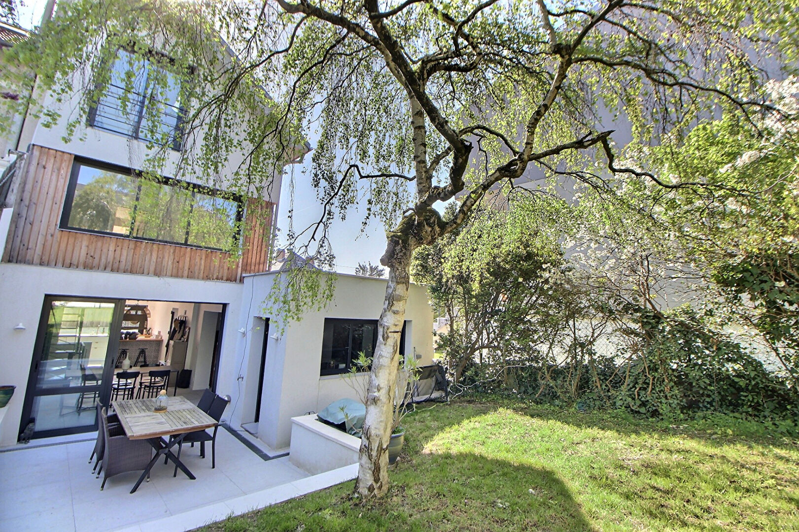 - au rez-de-chaussée : d'une belle pièce de vie de 48 m² (séjour, salle à manger, cuisine ouverte) ouvrant directement sur un jardin au calme absolu,