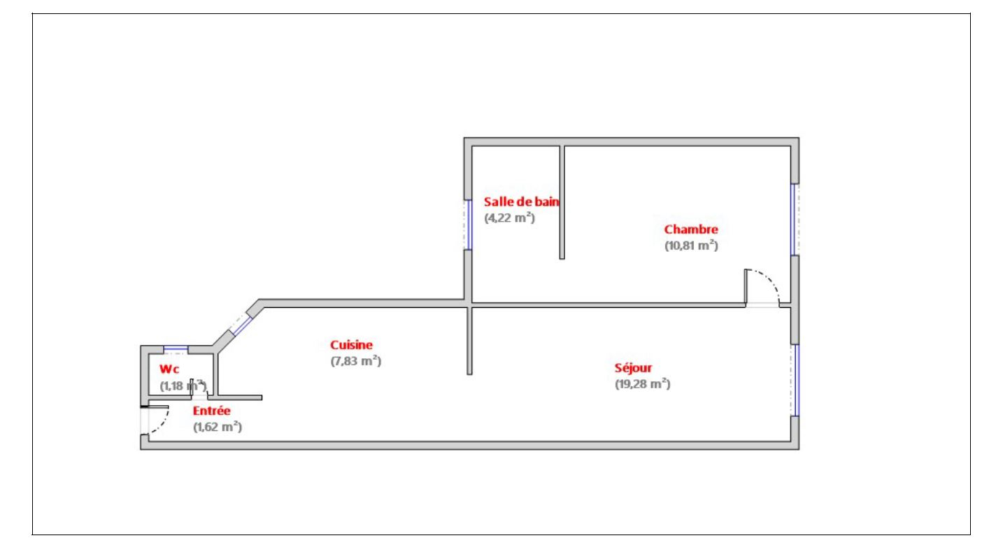 45 m² • 2 pièces • 1 chambre