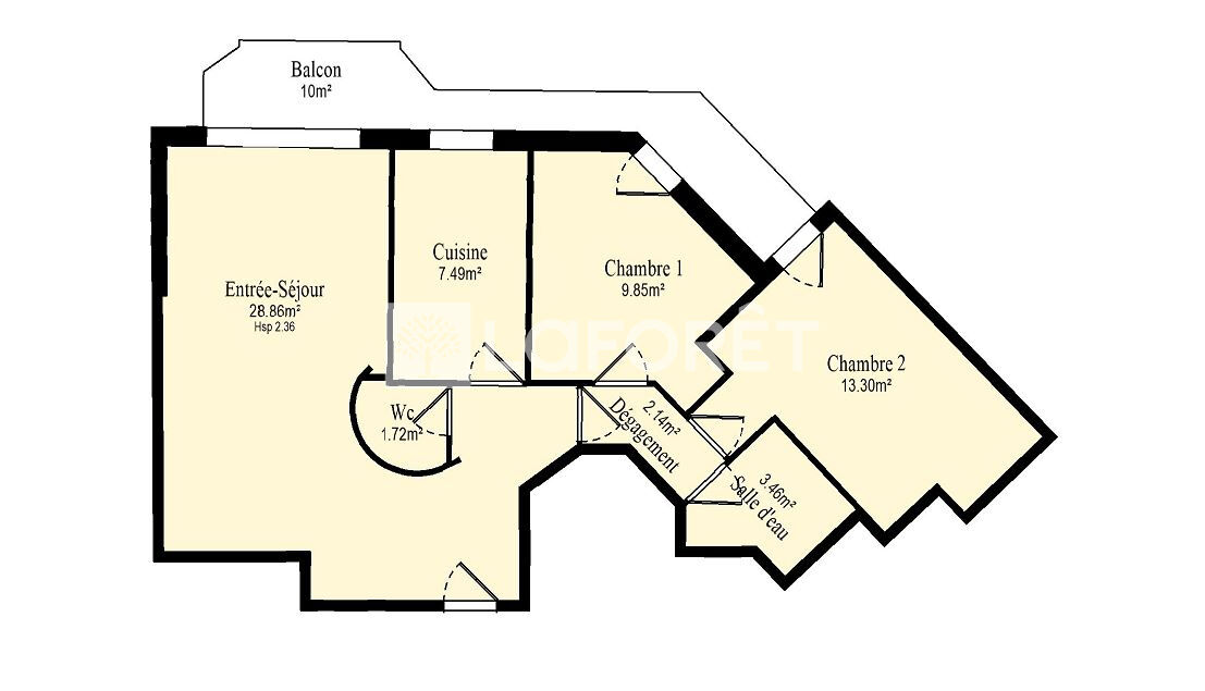 67 m² • 3 pièces • 2 chambres