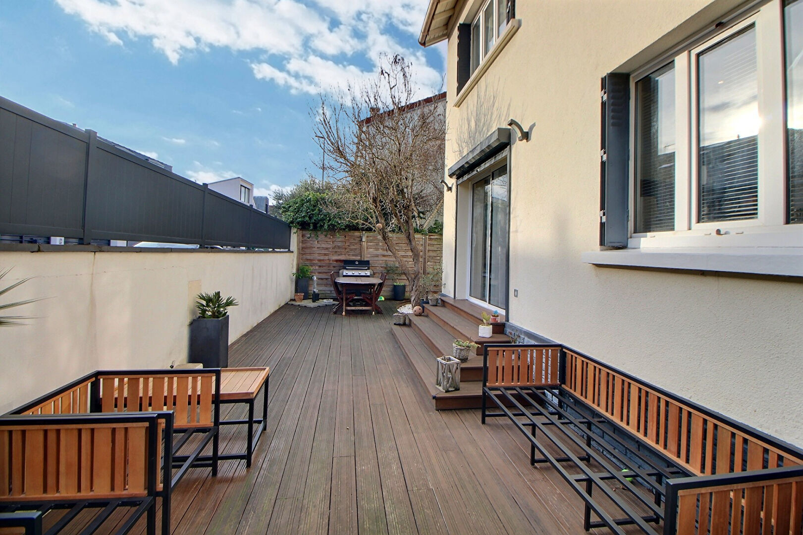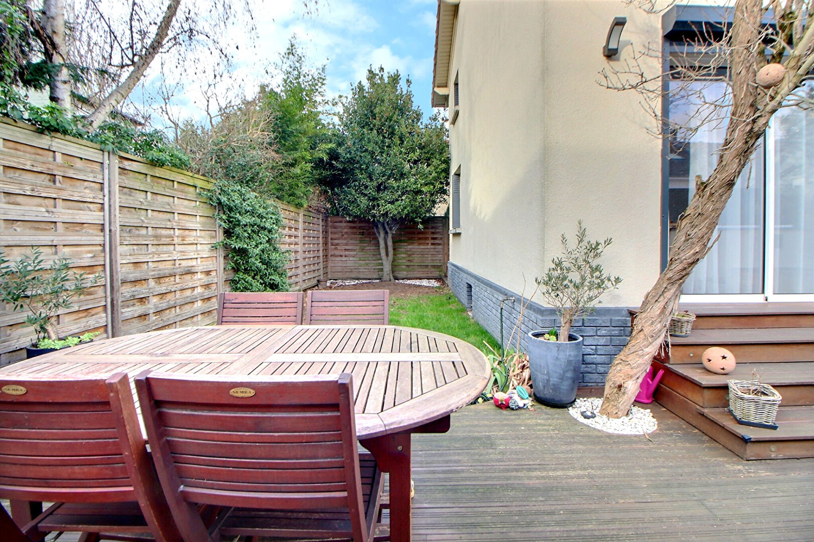 Avec un JARDIN de 98 m2 dans une rue au CALME et exposé sud.