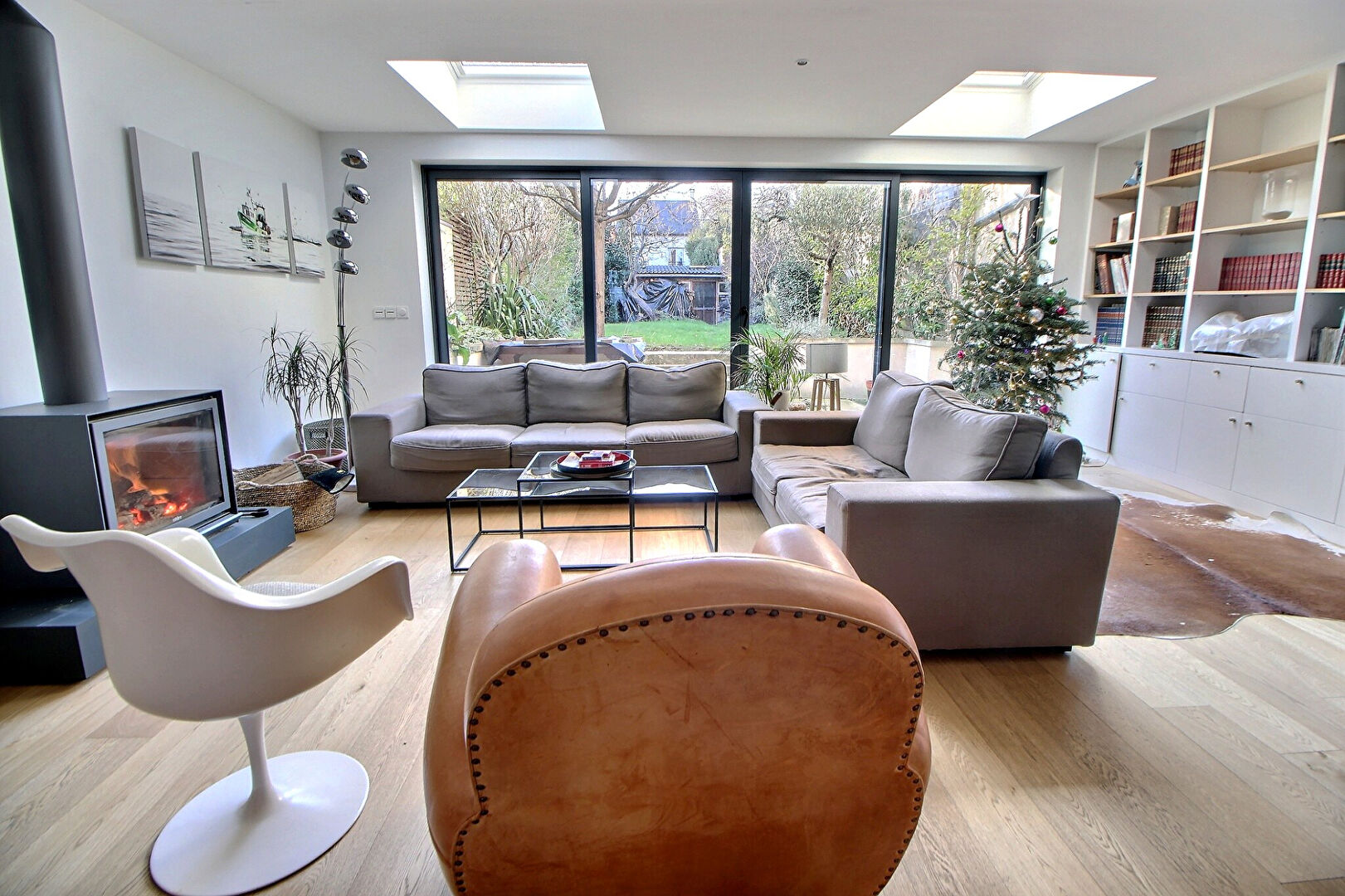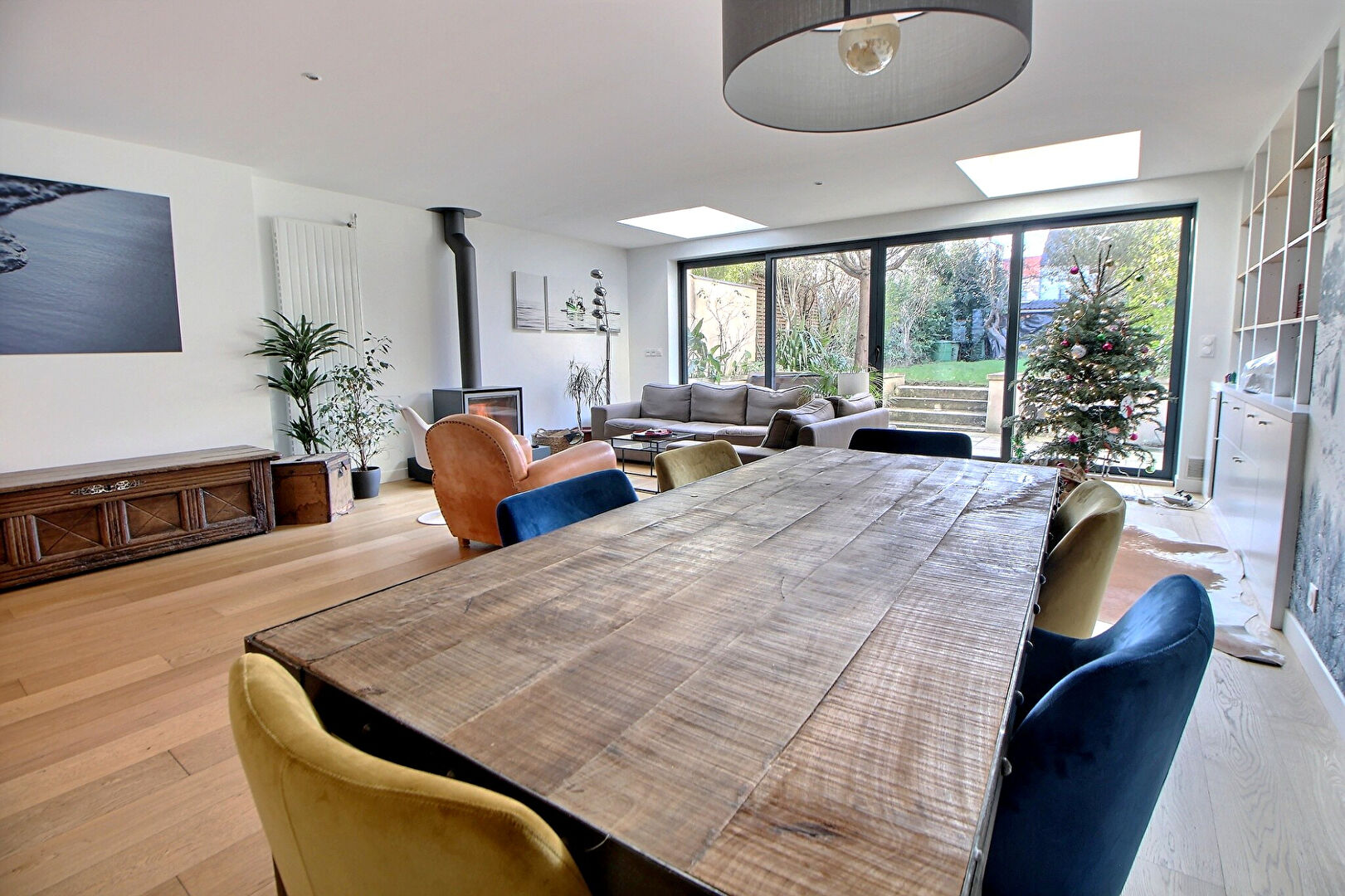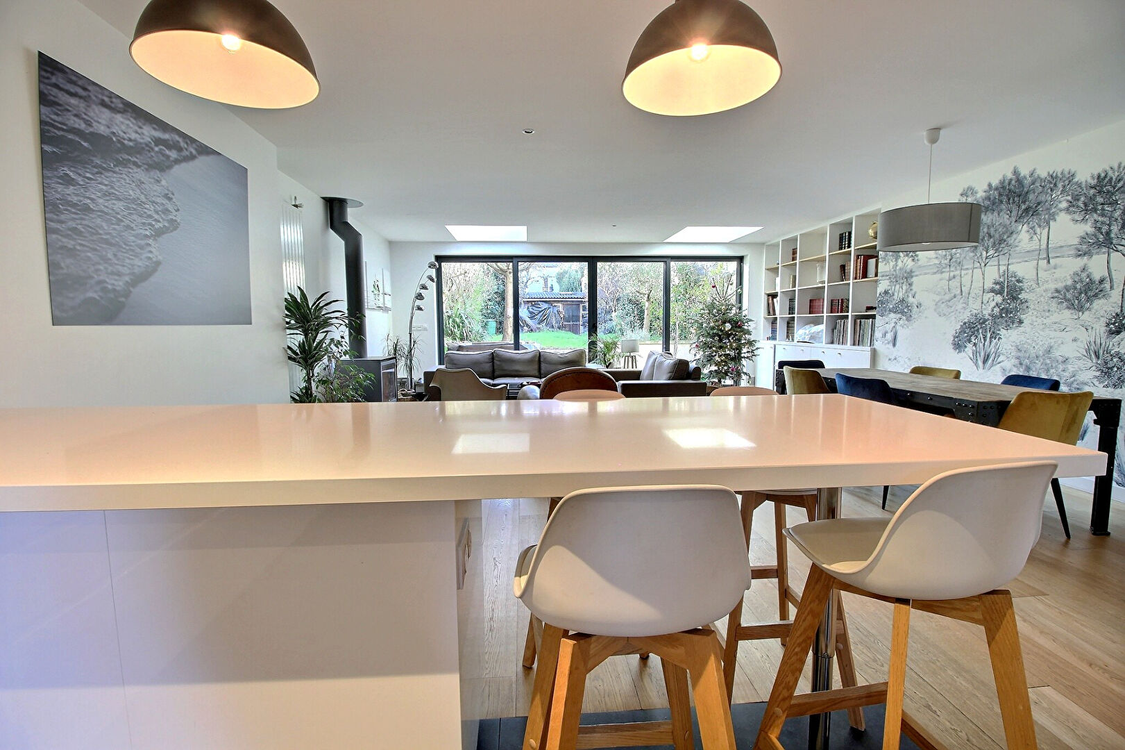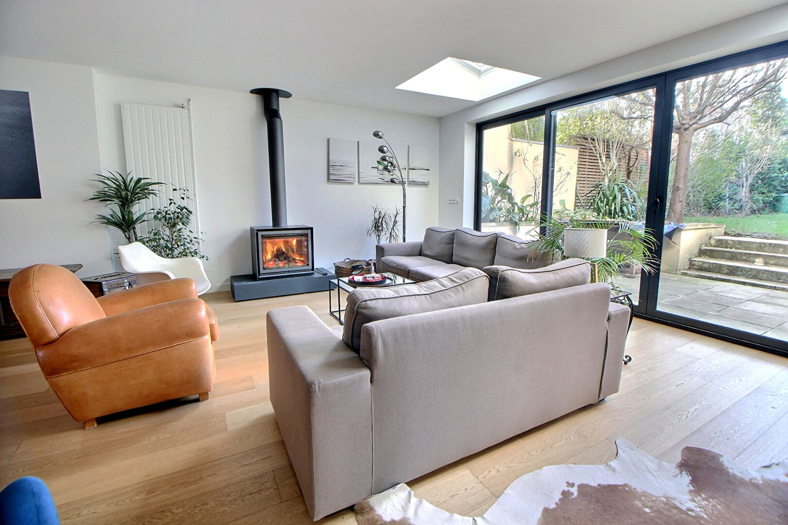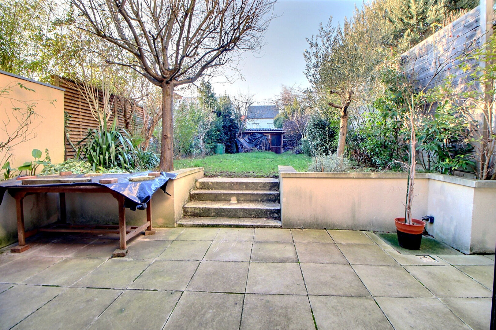 Piece de vie de 60m² avec accès direct au jardin exposé ouest, 5 chambres dont une suite parentale avec terrasse et salle d'eau, une salle de bains, un WC à chaque niveau.