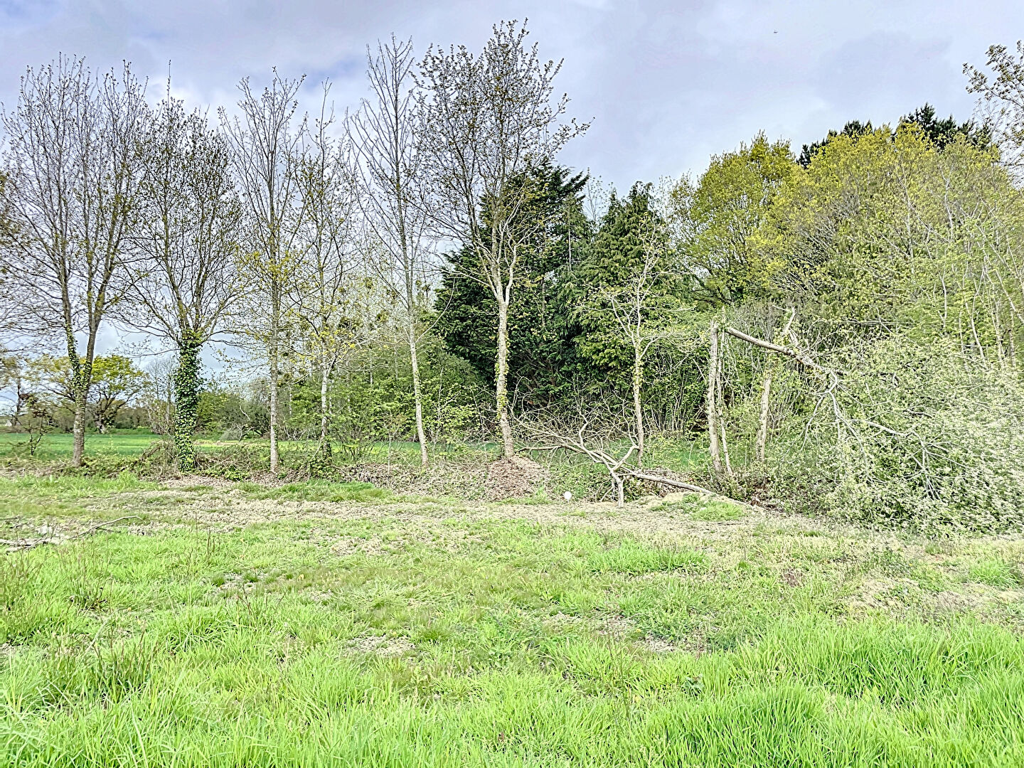 Beau terrain constructible borné mais non viabilisé, assainissement individuel à prévoir.