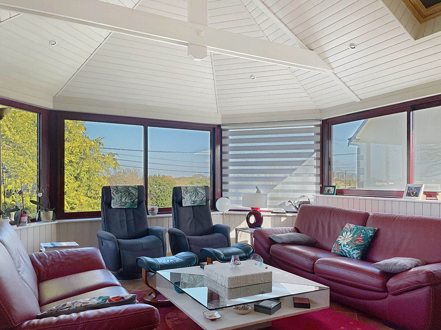 Elle est composée d'un salon/séjour de 50m² avec un poêle Stûve très performant, agrandie par une extension orientée sud est.