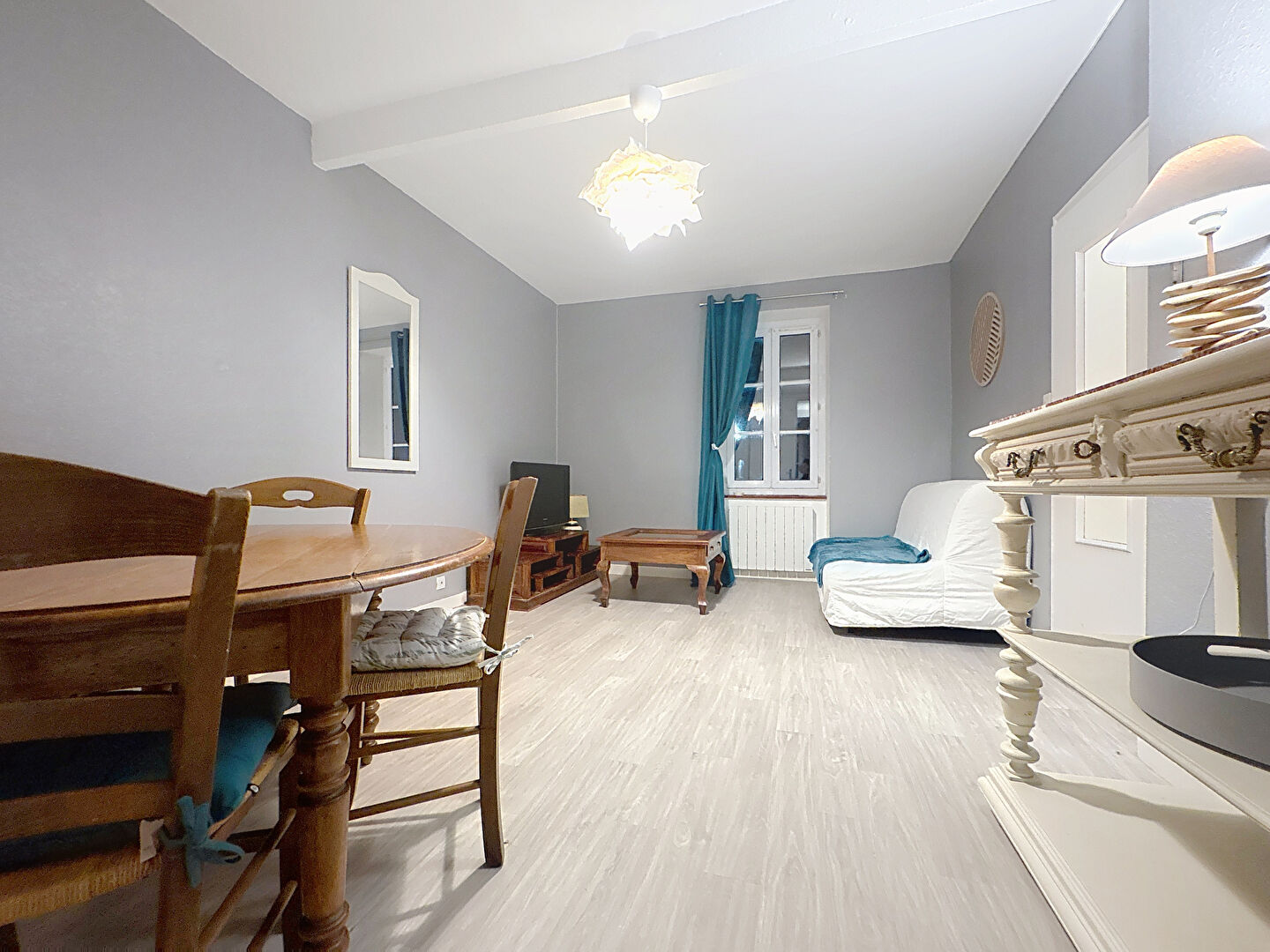 Le logement se compose d'un séjour, cuisine aménagée équipée, d'une chambre, ainsi que d'une salle d'eau, WC séparé. Appartement très bien équipé : machine à laver le linge, plaque de cuisson électrique, hotte, four micro onde....