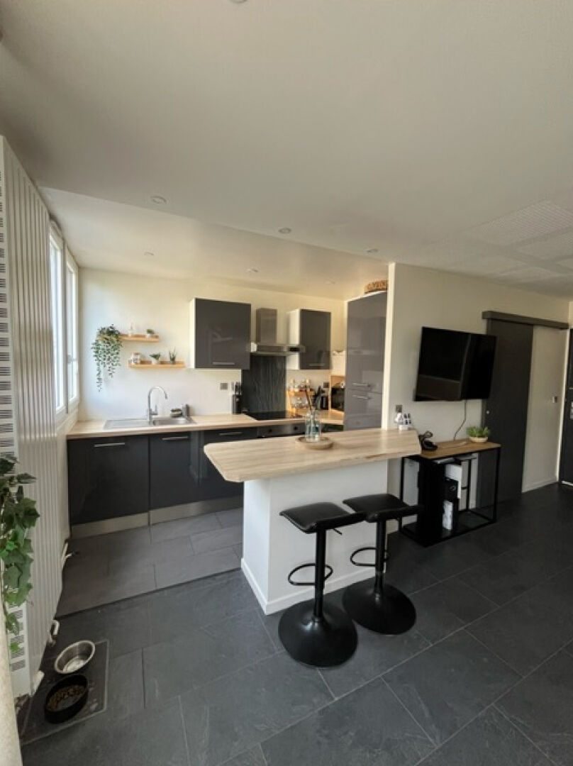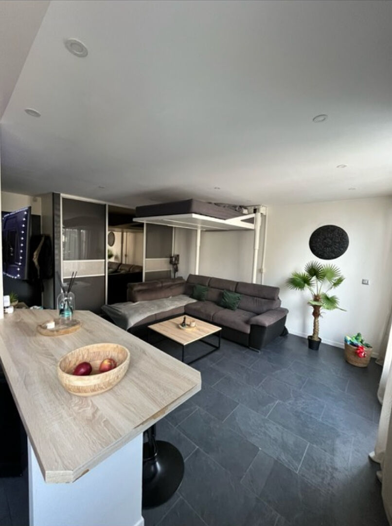 Ce bien comprend : une belle salle de séjour avec placards, une cuisine ouverte meublée et une salle d'eau avec WC.