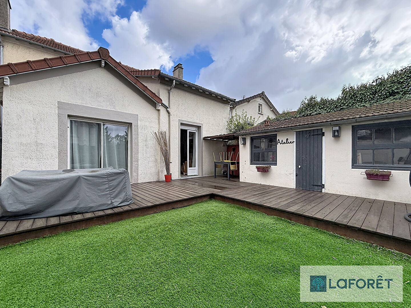 Votre agence Laforêt vous propose : Amoureux de l 'ancien ? Alors laisser vous séduire par cette maison de 1912 entièrement rénovée pleine de caractère : parquet, cheminées, moulures ....tout le charme d'époque est au rendez-vous dès l 'entrée....Le salon et la salle à manger avec cheminée et moulures avec accès sur la terrasse et le jardin , une chambre suite parentale donnant sur terrasse , une grande cuisine indépendante aménagée et équipée , wc, à l 'étage pièce palière avec 3 chambres , une salle de bains wc . Chaque pièce reste authentique ....Un atelier indépendant avec accès depuis la terrasse vous servira de rangements ou de pièces de peintures....Vous profiterez également d'un jardin au calme, véritable havre de paix, tout en étant proche des commodités.....Un bien rare, idéal pour les amateurs d'authenticité .....
