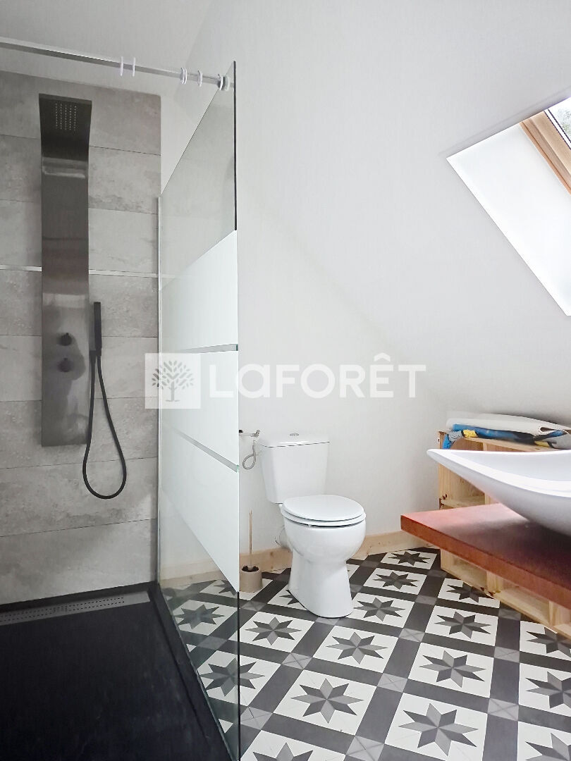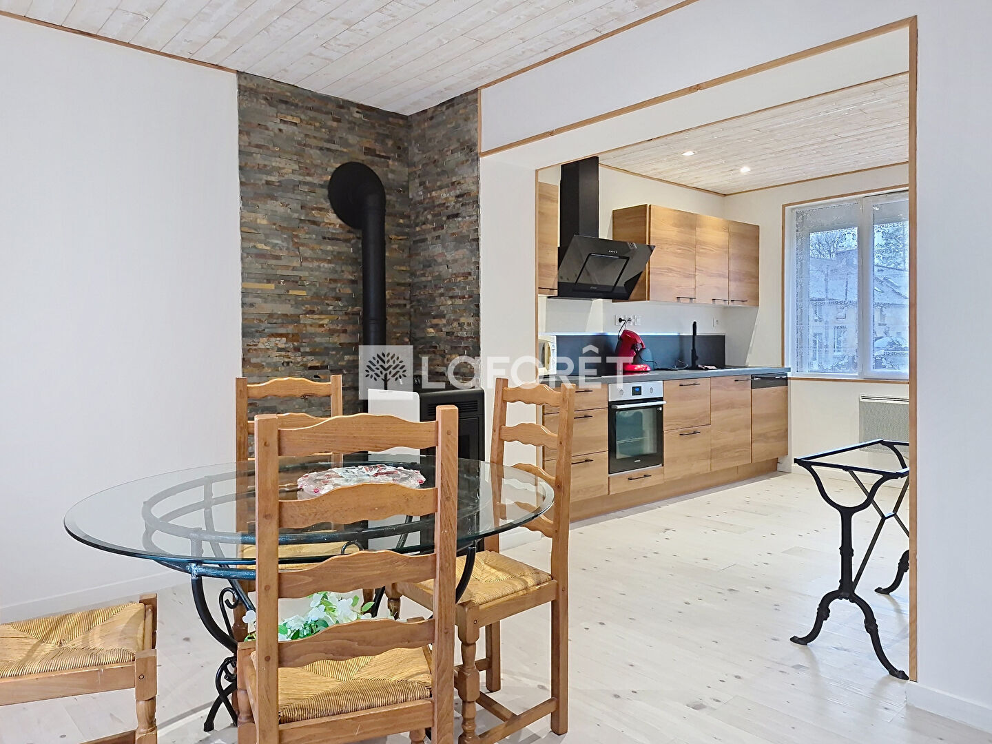GUILLAC 5680 - Dans un village calme avec accès immédiat à la voie expresse, maison indépendante intégralement rénovée offrant au RDC : séjour-cuisine avec poêle à granulés, chambre; salle de bain/WC ; à l'étage : 2 chambres, bureau de 8m², salle d'eau/WC. Garage, terrain de 750m², assainissement aux normes, DPE D, double vitrage. A saisir !