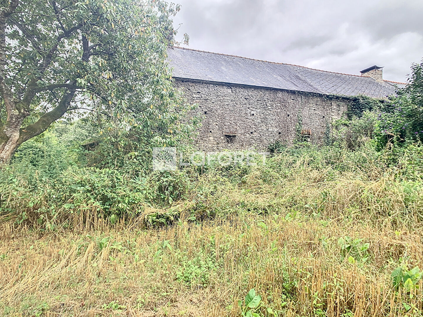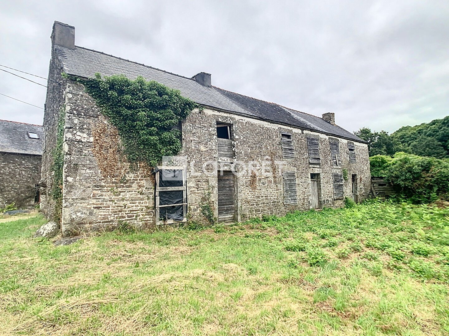 MENEAC 56490- Ensemble de bâtiments composés d'une longère de 150m² au sol, avec grenier, construite en pierre sous ardoise, raccordée en eau et en électricité. En face, une maison mitoyenne d'un côté de 50m² au sol construite en pierre sous ardoise, avec puits et appentis. Pour compléter cet ensemble 64020m² de terres agricoles actuellement sous fermage.