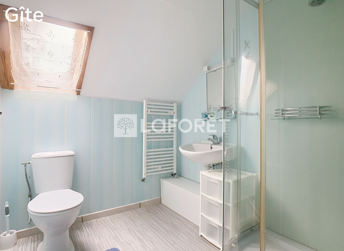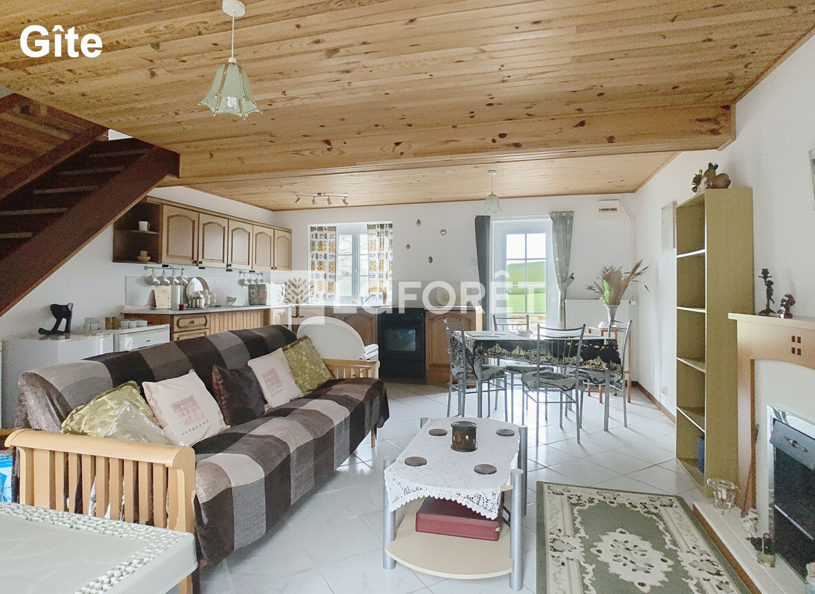 PLEMET 22210 - VISITE VIRTUELLE DISPONIBLE SUR NOTRE SITE - Longère indépendante sans vis-à-vis de 170m² et son gîte attenant de 60m². La maison principale se compose, au rez-de-chaussée, d'une cuisine/ salle à manger, d'une salle d'eau avec WC et d'un grand séjour. A l'étage, un grand palier dessert 4 chambres et une salle de bains avec WC. Le gîte comprend une pièce de vie avec coin cuisine au rez-de-chaussée. A l'étage, deux chambres et une salle d'eau avec WC. Garage attenant, cour gravillonnée. Le tout sur plus de 5000m² de terrains avec vue sur la campagne. Travaux à prévoir : assainissement non conforme, rafraîchissement global et reprise d'électricité.
