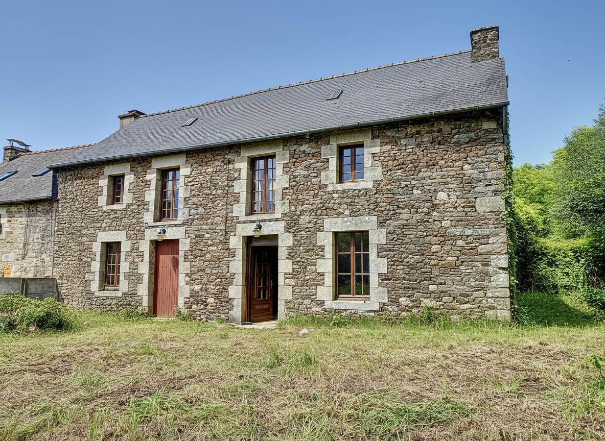 SAINT MALO DES TROIS FONTAINES 56490 - FAIRE OFFRE ! En impasse dans un village très calme, maison en pierres mitoyenne d'un côté offrant au rez-de-chaussée un séjour, salon, salle d'eau, WC, cave, atelier. A l'étage : 2 chambres, WC. Grenier au-dessus. Terrain sans vis-à-vis de 960 m². Travaux intérieurs à prévoir, assainissement à mettre aux normes. A visiter !