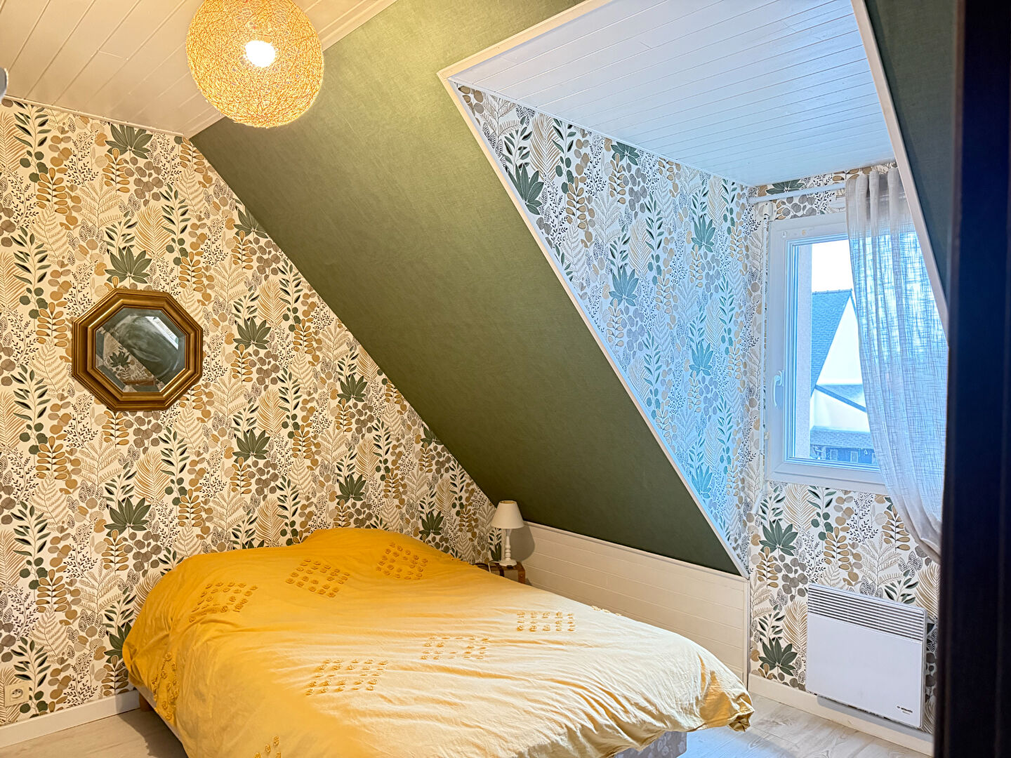 - À l'étage, vous trouverez quatre chambres dont une en enfilade, ainsi qu'une salle de bains avec WC.