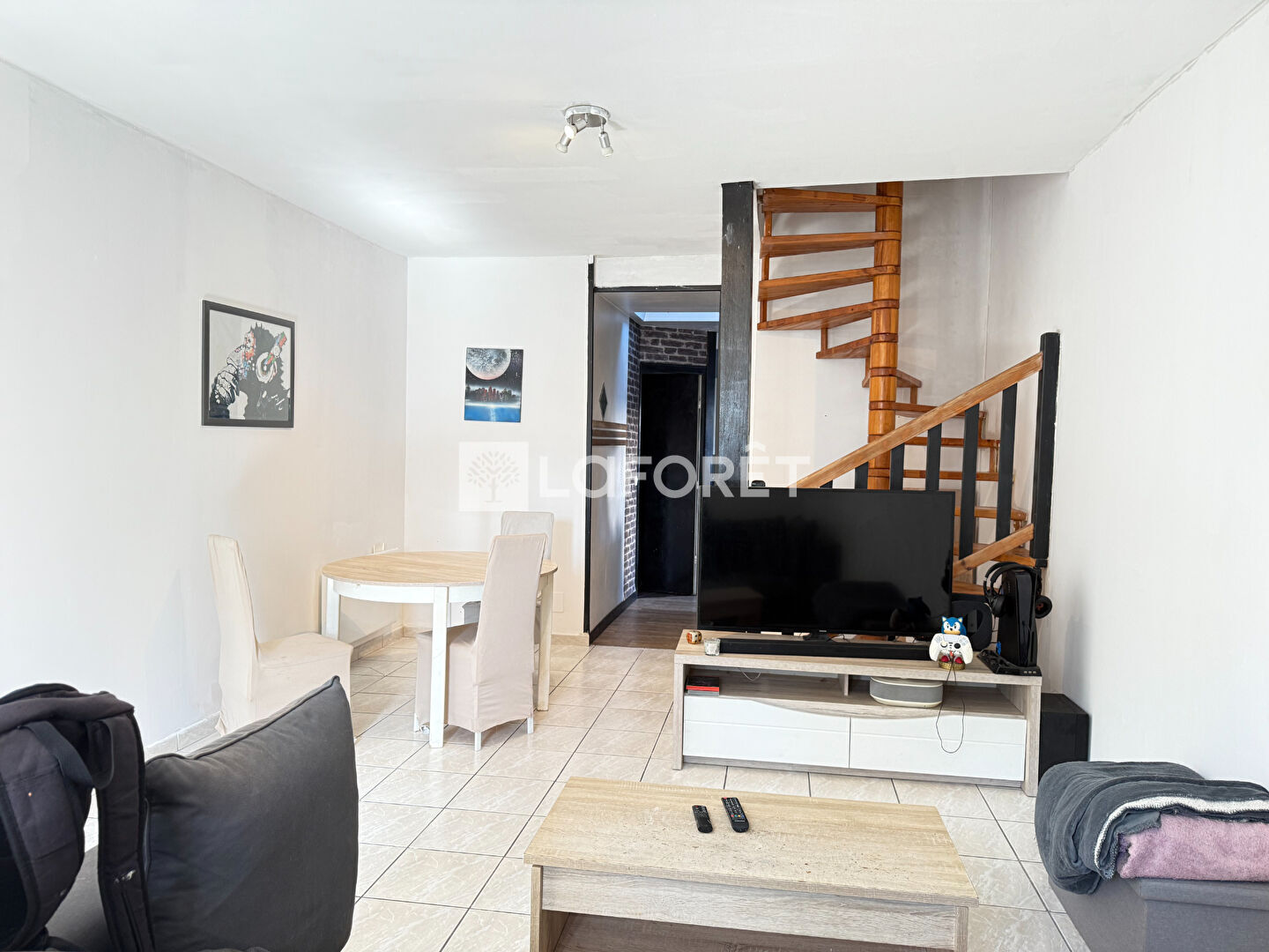 Un appartement de type 2 en duplex comprenant : salon/salle à manger, cuisine aménagée et équipée, WC, salle de bain, 1 chambre.