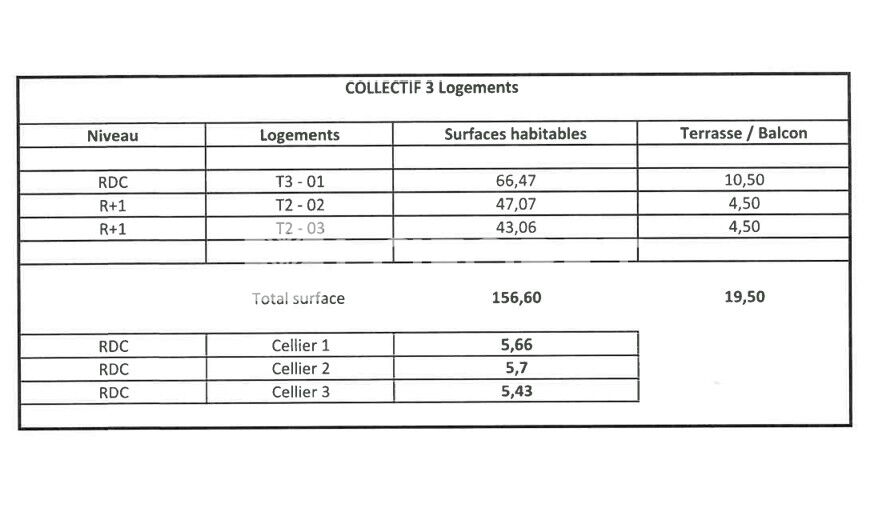 56 m² • 3 pièces • 2 chambres
