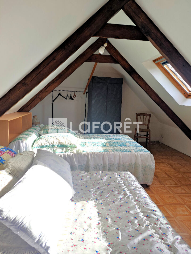 Au second étage, un couloir dessert une chambre avec un espace grenier à aménager.