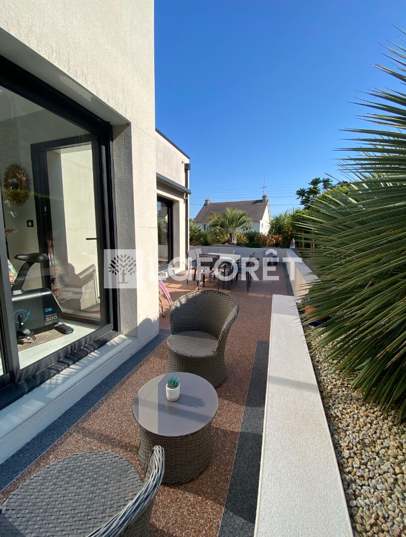 Concernant les extérieurs: terrain clos sans pelouse, double garage avec portail motorisé, extérieurs paysagés. De plus, une tersasse bien exposée vous permettra de profiter de vos repas en famille au soleil.