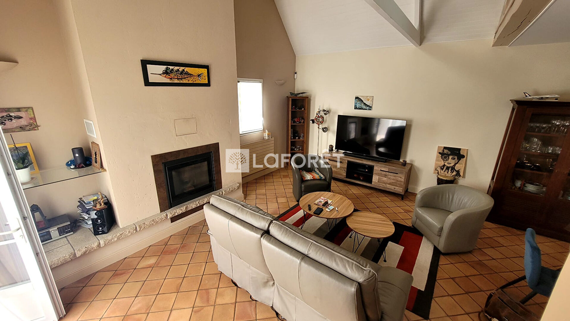 - Une pièce de vie lumineuse de près de 38 m² avec plafond cathédrale, orientée plein sud