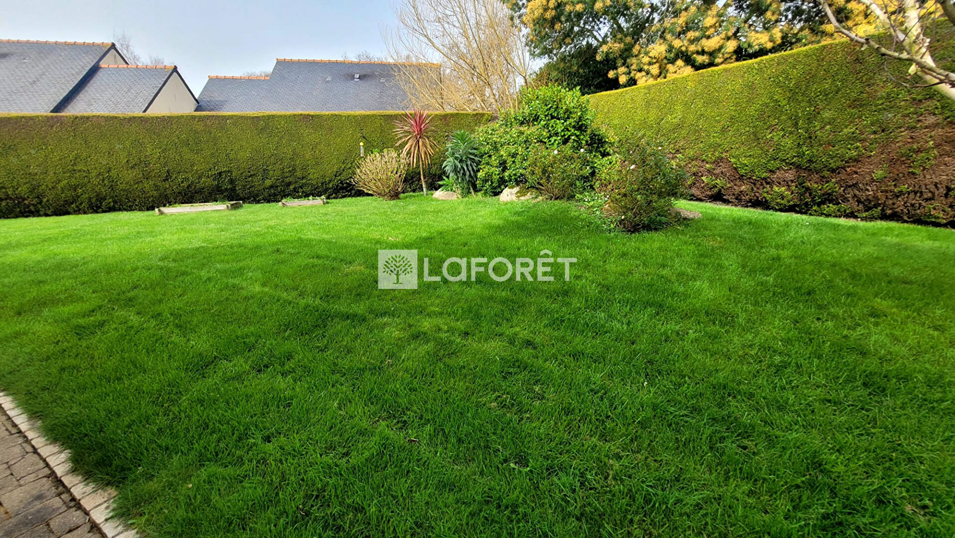 Implantée sur un terrain clos de 770 m², la maison dispose d'un jardin agréable à l'arrière et d'un espace permettant plusieurs stationnements.