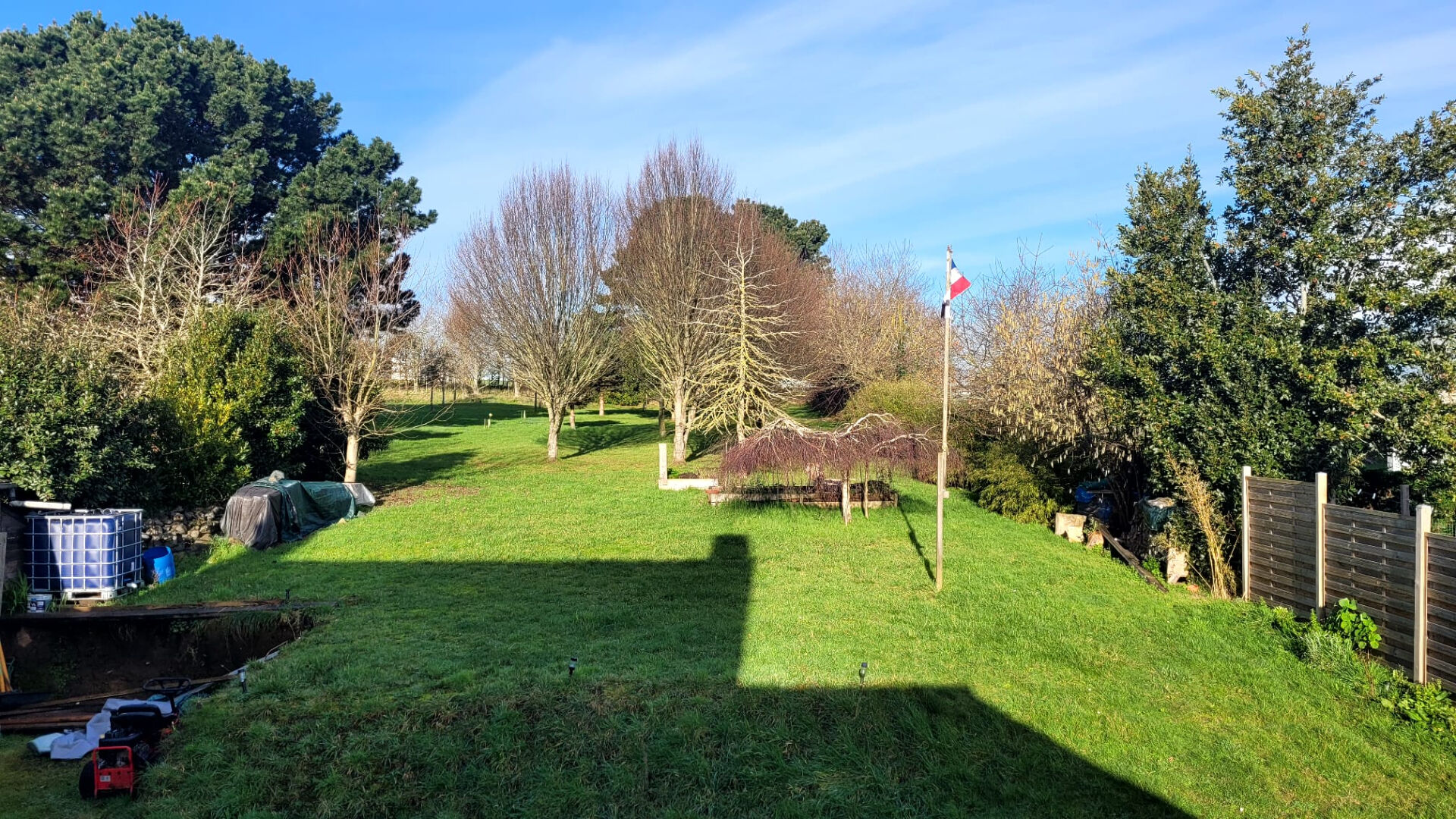 Grand terrain de 2 210 m² arboré et clôturé en grande partie.