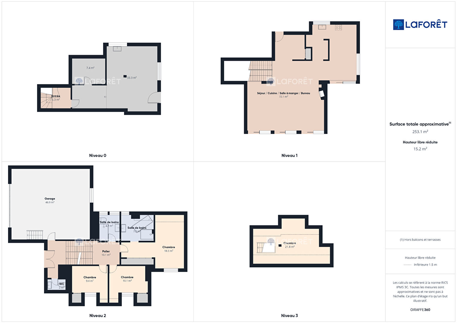 4 chambres, dont une vaste suite parentale avec salle de bain privative,