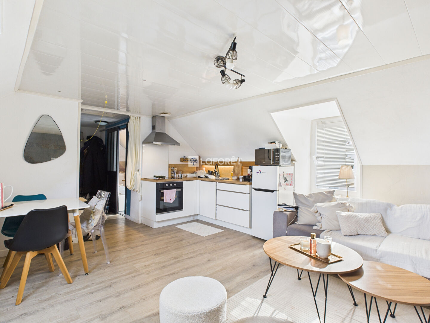 Au 1er étage : appartement T2 refait à neuf : séjour / cuisine, chambre avec salle d'eau et WC