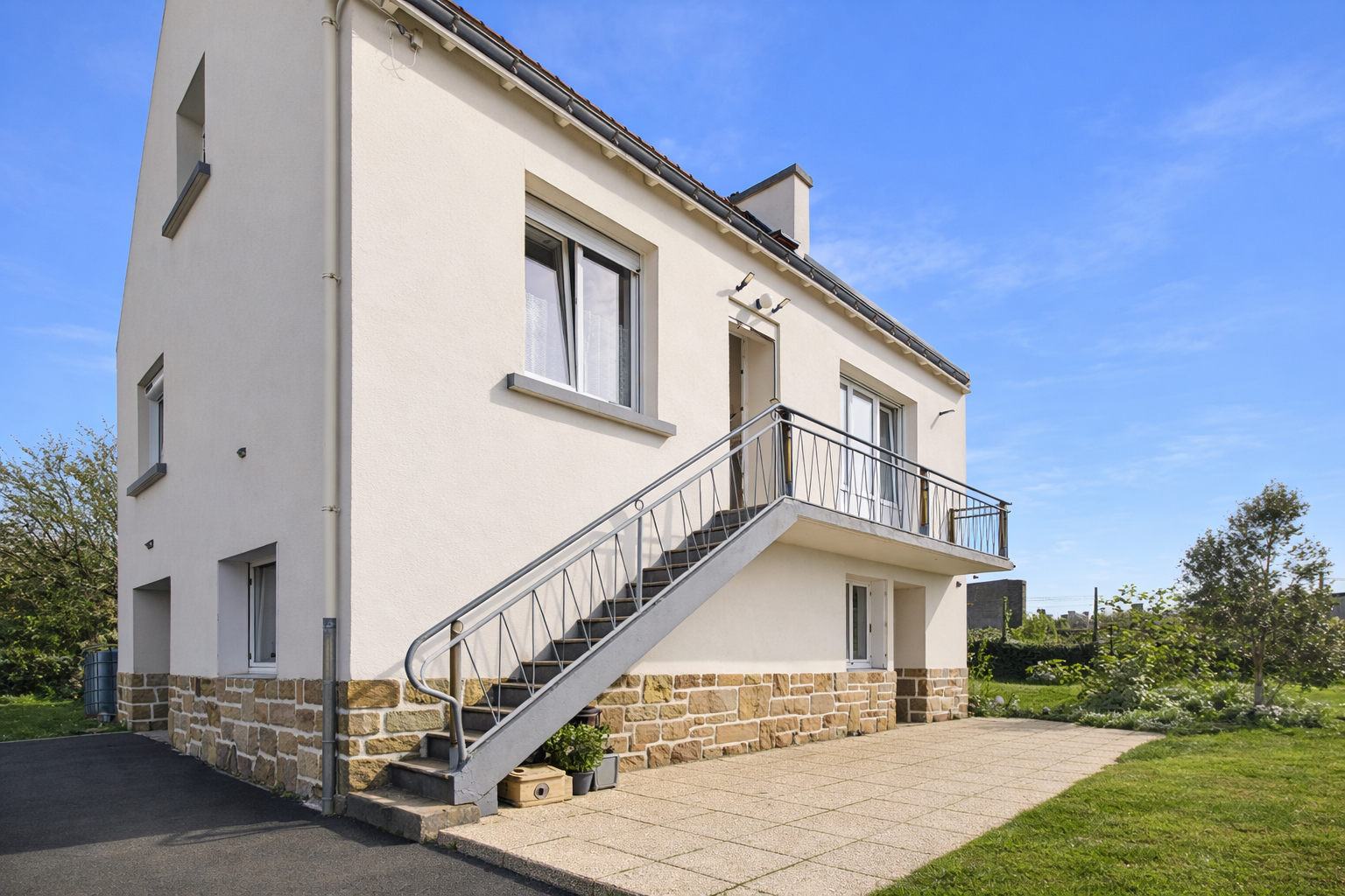 À l'extérieur, la maison bénéficie d'un terrain entièrement clôturé, avec une cour en bitume facilitant l'entretien et les accès. Un portail manuel vient compléter l'ensemble.