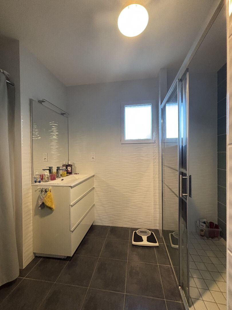 Elle se compose d'une pièce de vie lumineuse d'environ 39m² avec cuisine équipée et accès à une grande terrasse orientée sud, de deux chambres avec placard et une troisième avec dressing, d'un bureau, d'une salle d'eau et d'un WC.