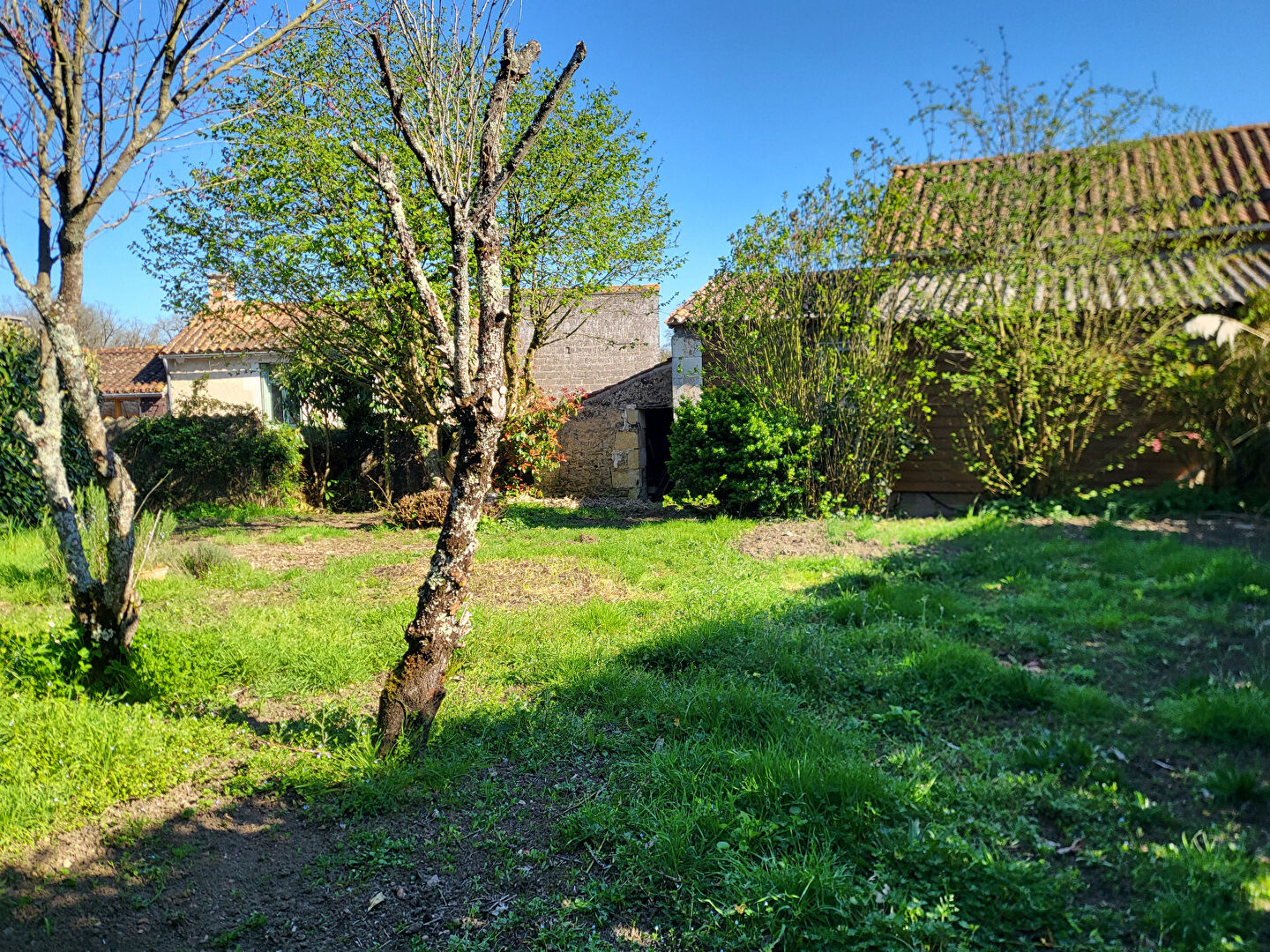 Jardin, appentis pour voiture, cellier et petite dépendance.