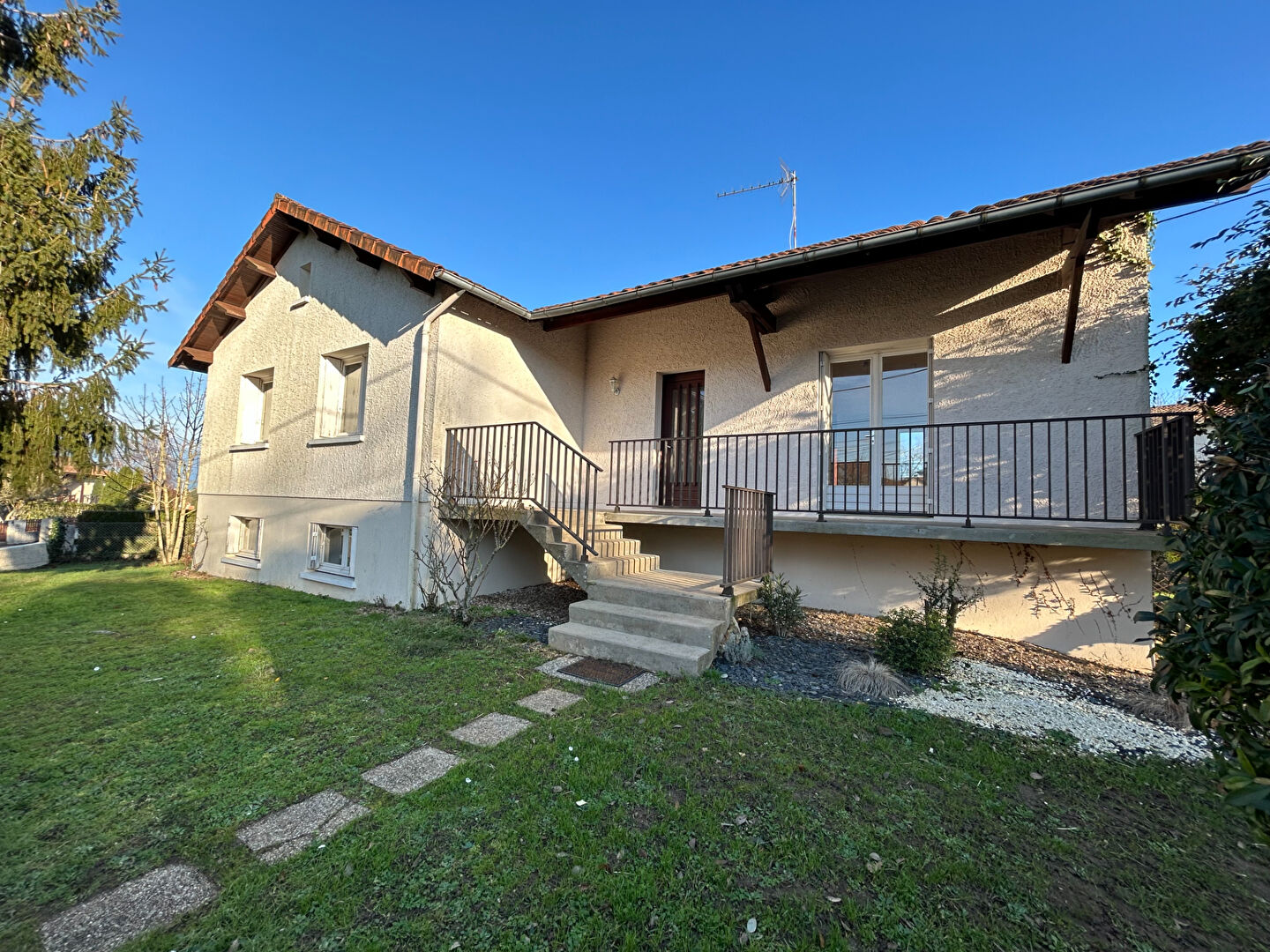 Garage et chaufferie. Terrasse, balcon et jardin de 628 m². Chauffage fuel.