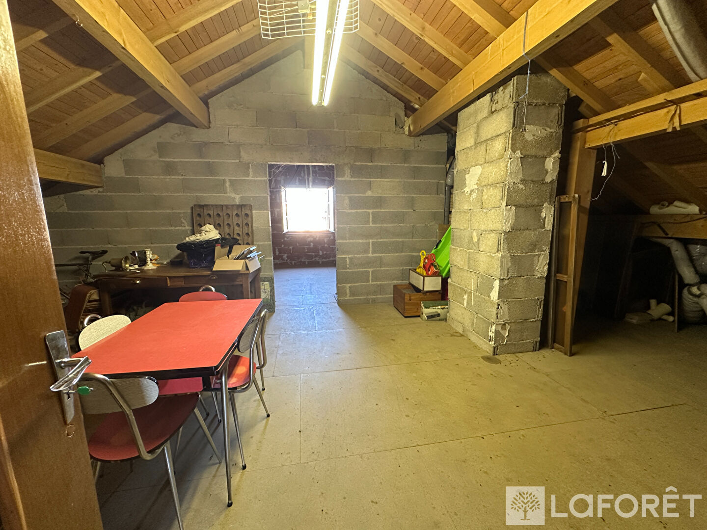 L'étage dispose d'une mezzanine et de combles aménageables de 57 m², avec escalier déjà installé et ouvertures existantes, permettant de créer facilement des pièces supplémentaires (chambres, bureau, salle de jeux ou suite parentale).