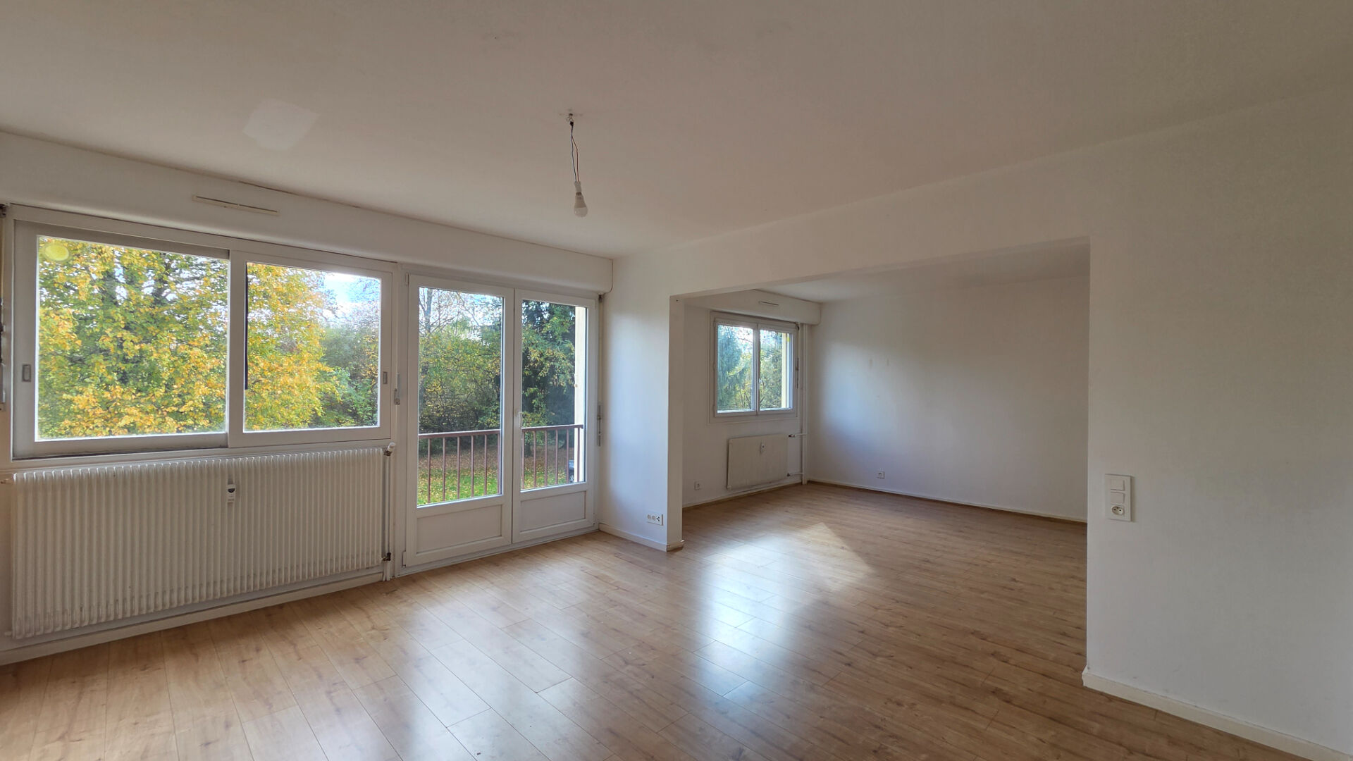Une entrée et couloir avec placard,, un salon, séjour très lulineux, une cuisine, un agréable balcon couvert, 2 chambres avec placards, une salle de bain et un WC séparé.