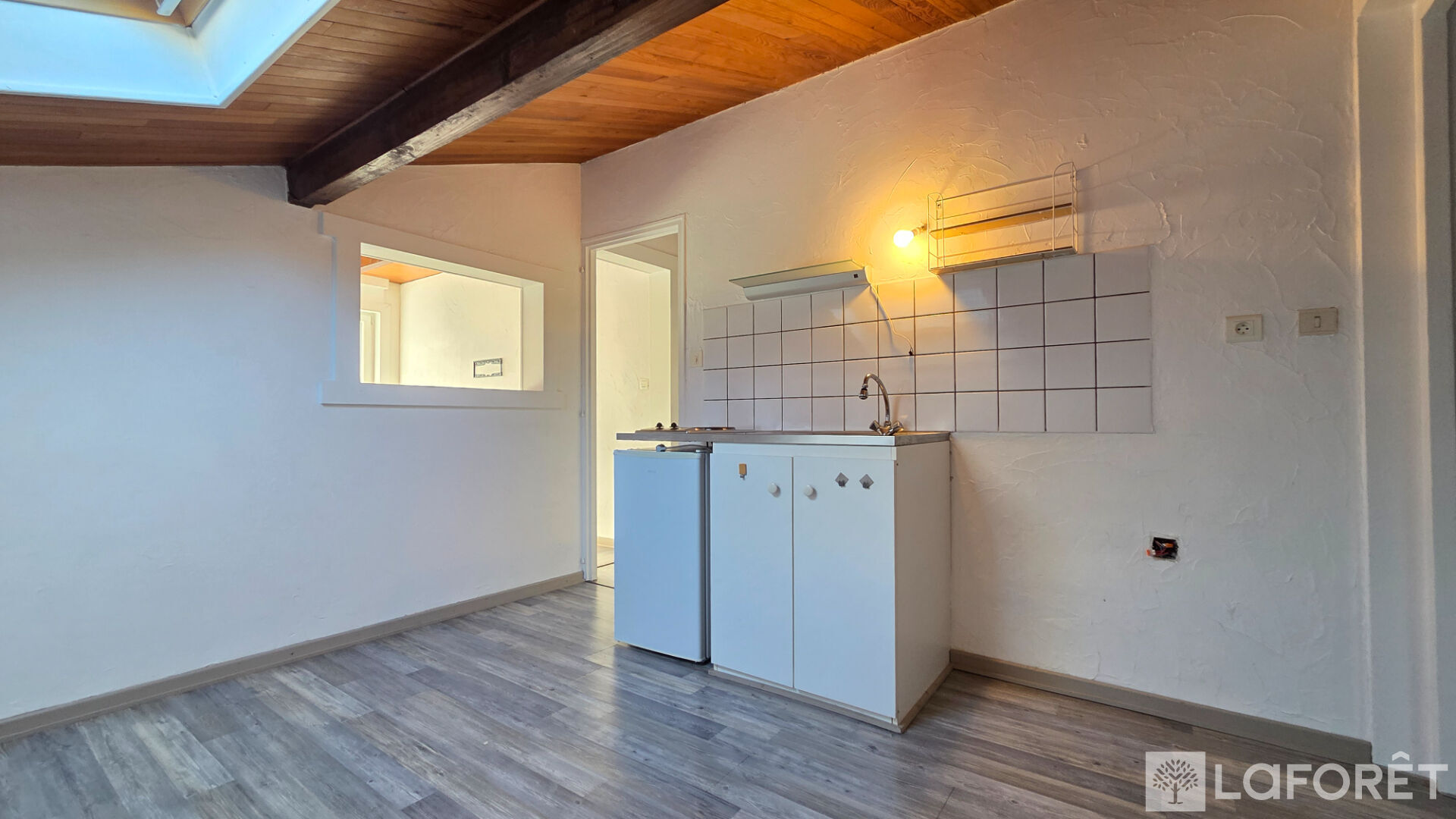 Il se compose d'une pièce de vie, une cuisine séparée, une chambre avec grand placard coulissant , une salle d'eau avec WC .