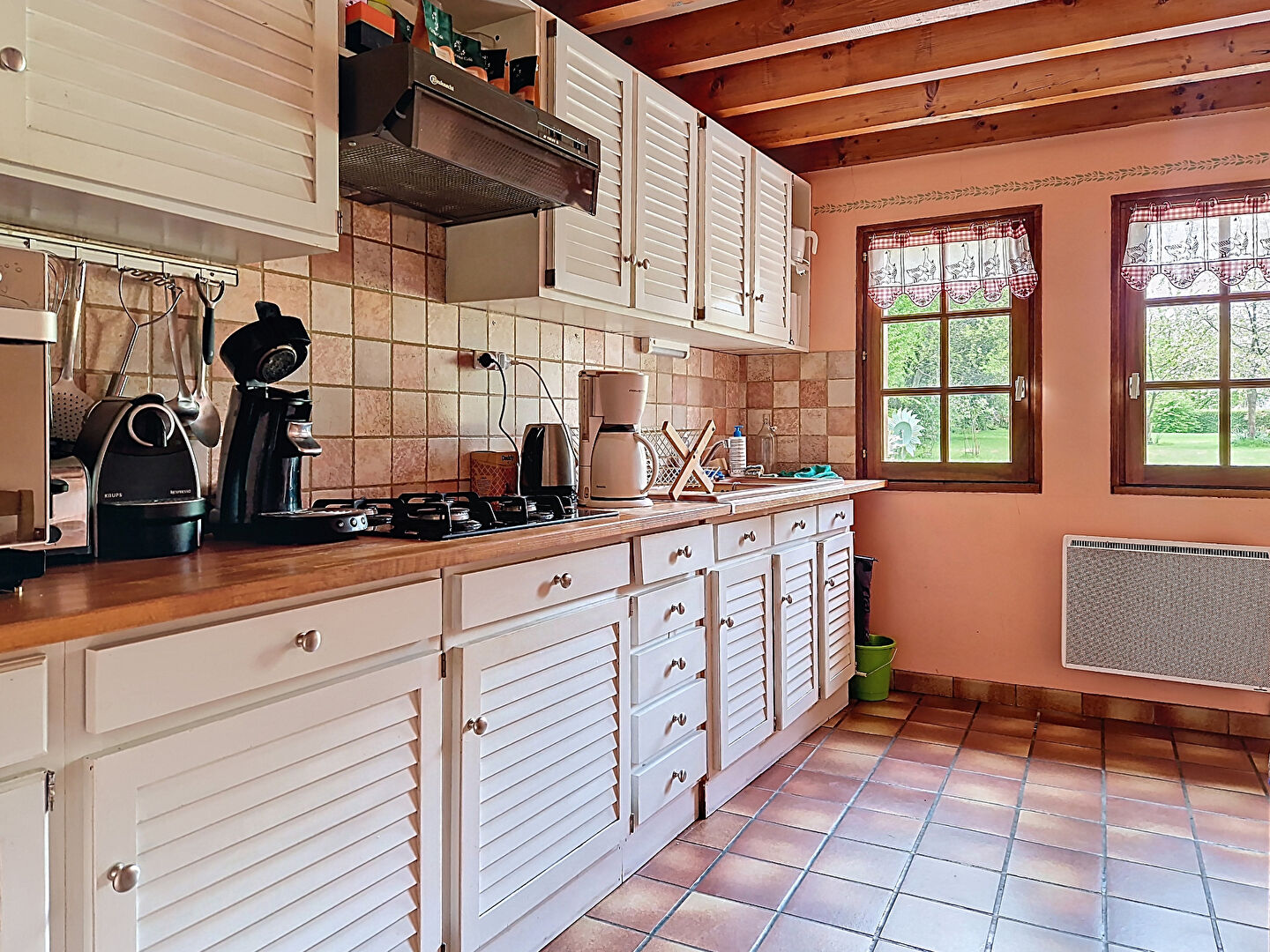 Au rez-de-chaussée, vous découvrirez une cuisine fonctionnelle, complétée par une arrière-cuisine, un vaste salon/séjour agrémenté d'une grande cheminée ouverte, parfait pour des moments conviviaux, une chambre et un bureau attenant pouvant aisément être transformé en dressing ou en chambre d'enfant, une salle de bains et des toilettes indépendantes apportent confort et praticité.