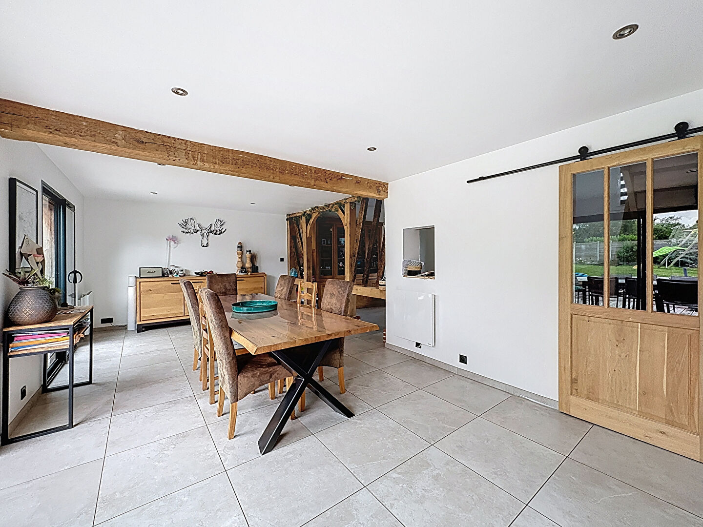 Elle comprend : un grand séjour/salon avec cheminée, une cuisine aménagée et équipée, trois chambres, un bureau, une salle de douches et une salle de bains.