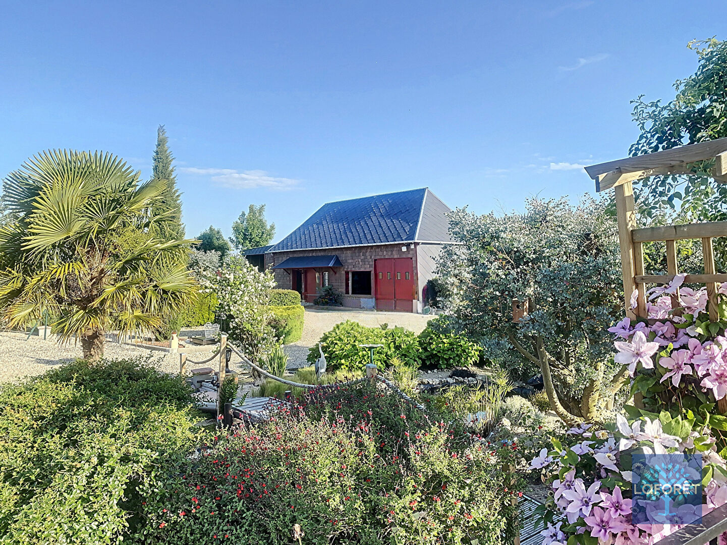 Implantée sur une parcelle de plus de 6000 m², arborée de diverses arbres fruitiers, d'un puits, d'un bassin, de plusieurs chalets, un carport pouvant accueillir un camping car et aussi une très grande dépendance avec espaces atelier, garage ...