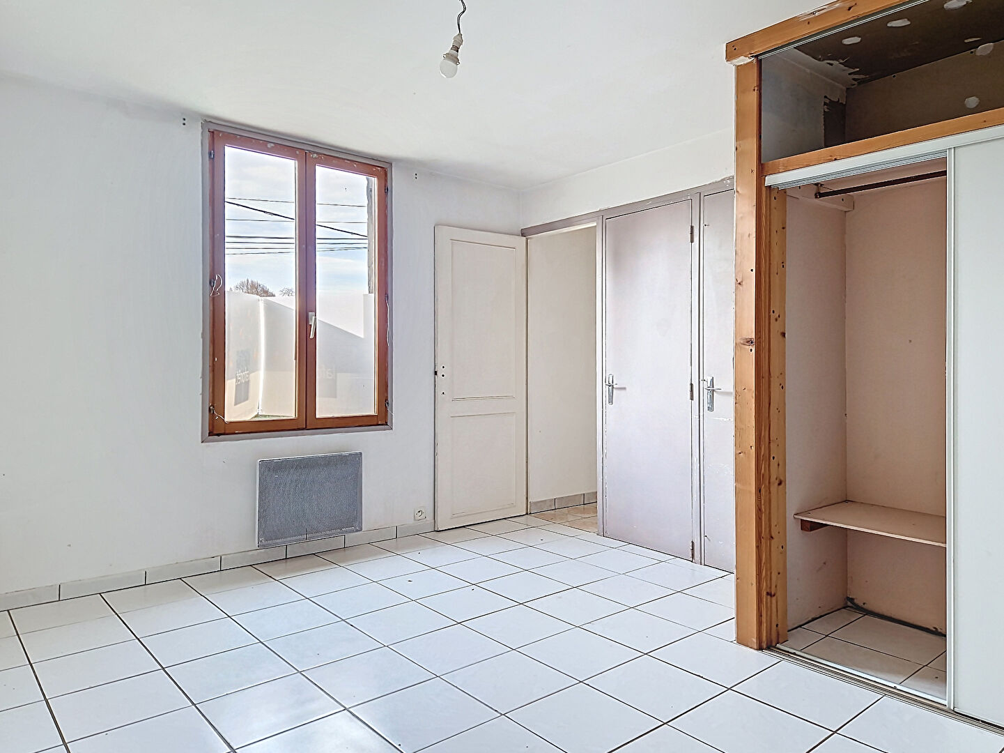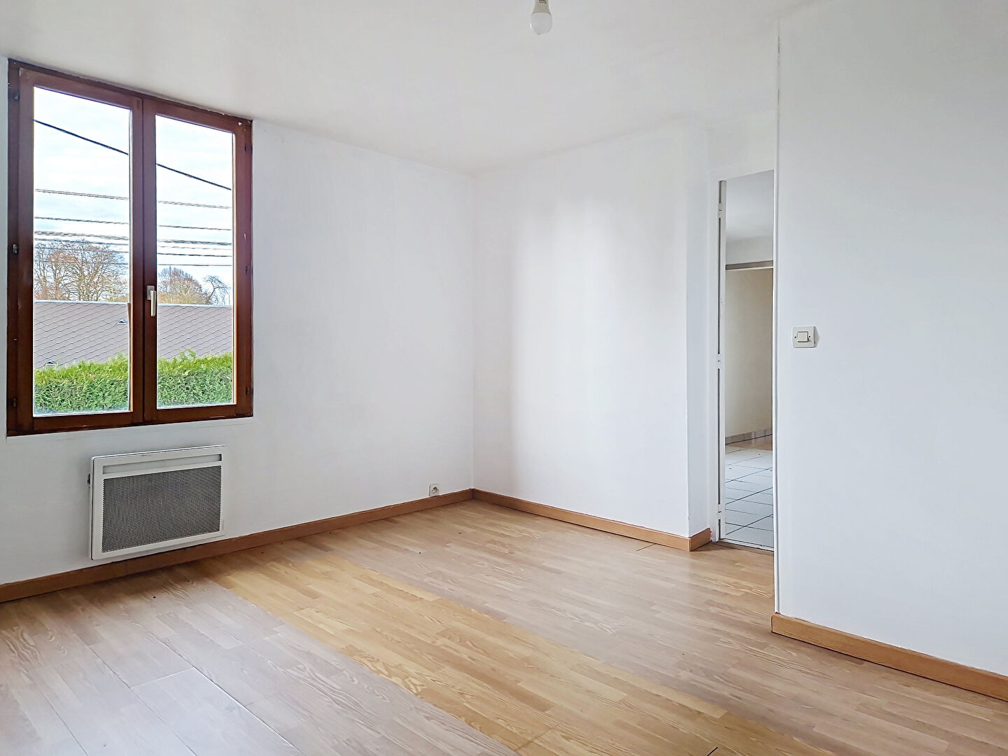 À l'étage : Deux chambres communicantes, une salle de bains avec wc.