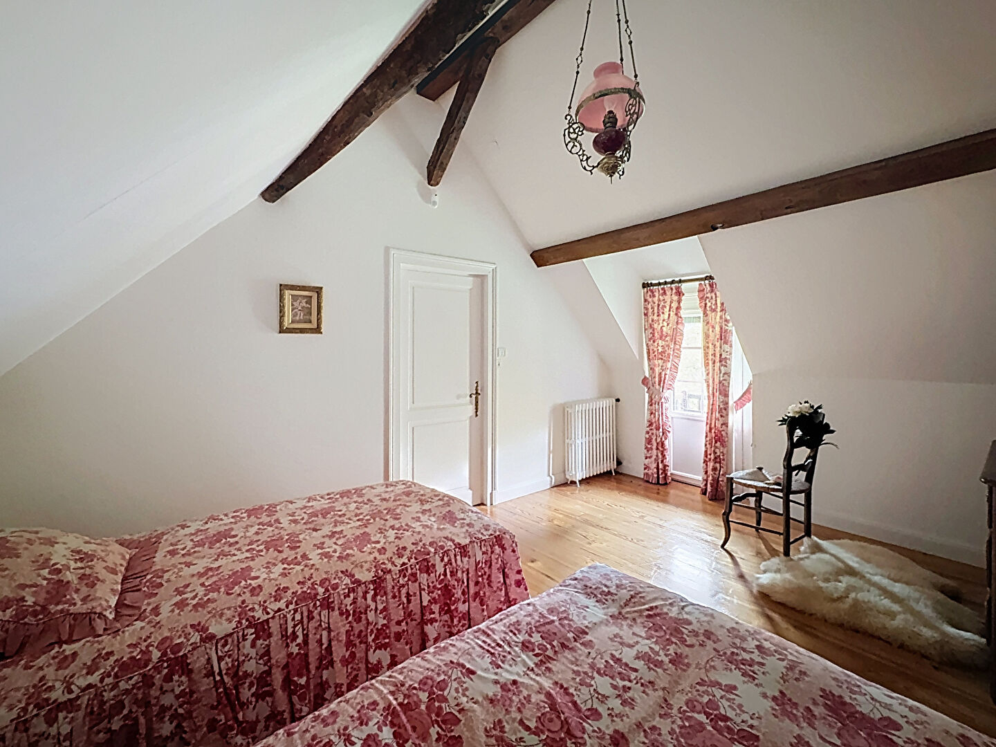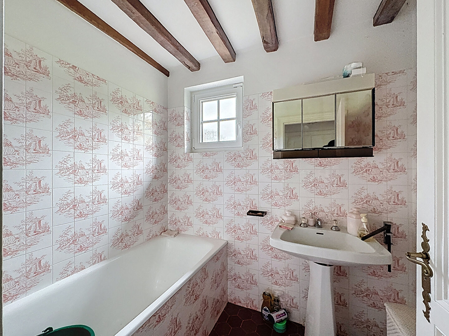 Au premier étage : 3 chambres, une salle de bains avec wc.