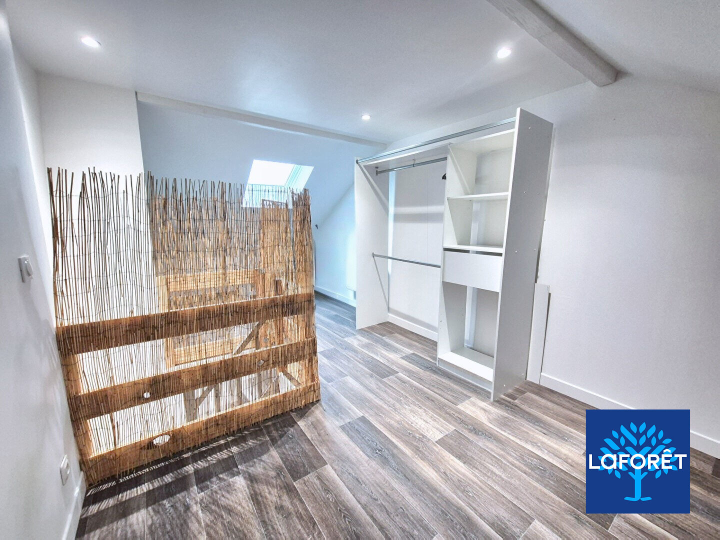 Le dernier étage comprend une chambre avec rangement.