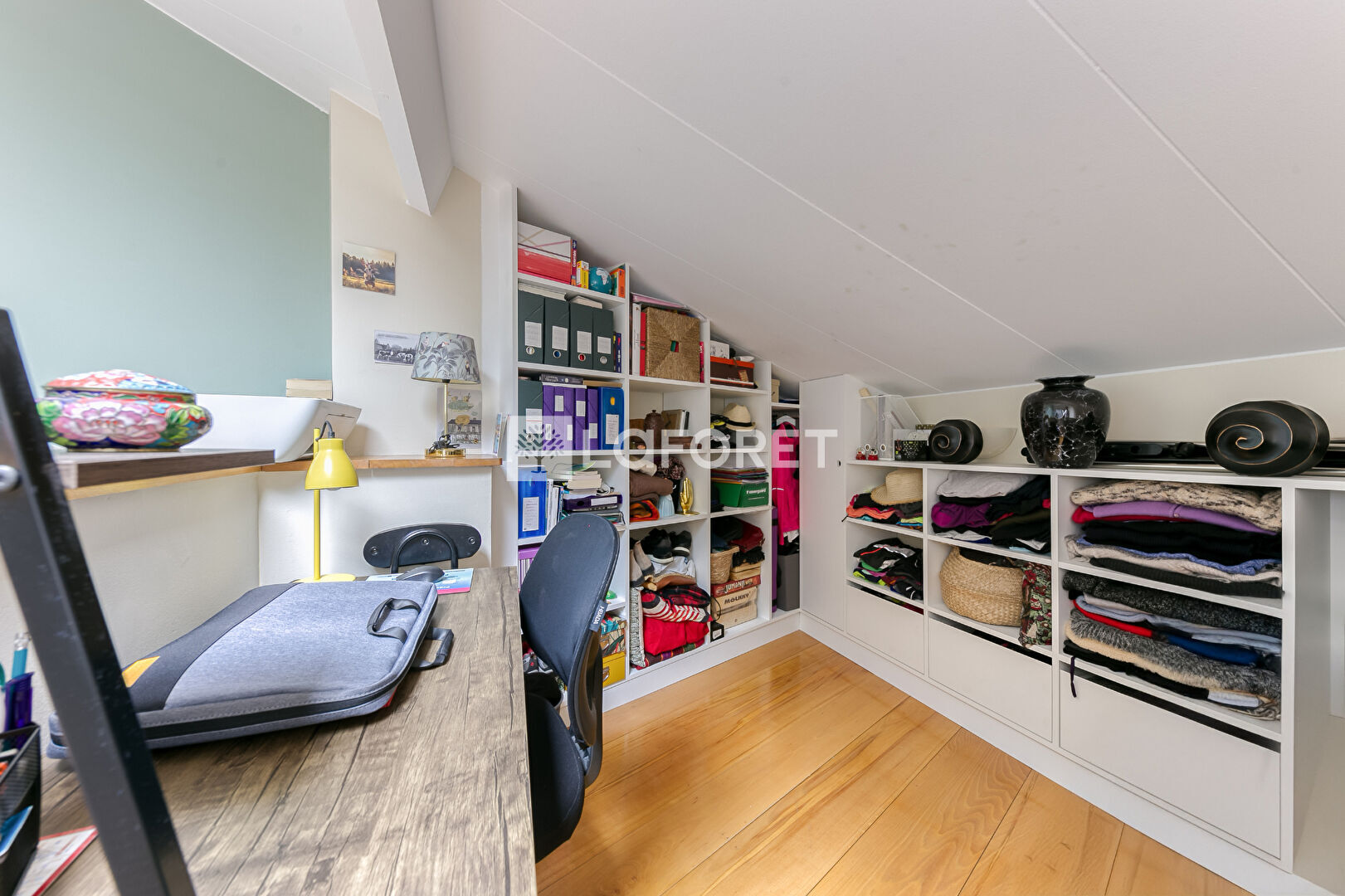 a l'étage une chambre et un grand dégagement pouvant faire office de bureau .