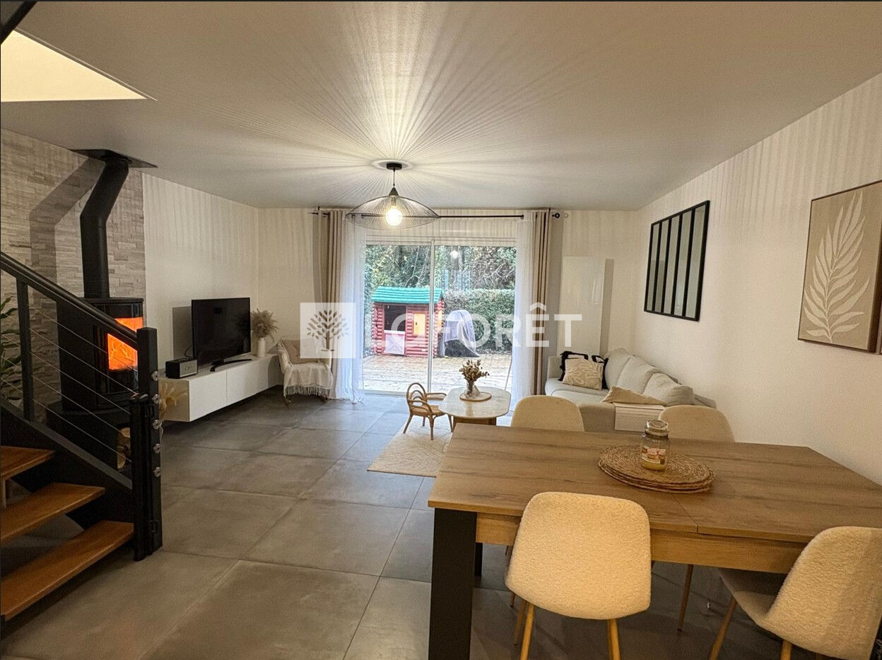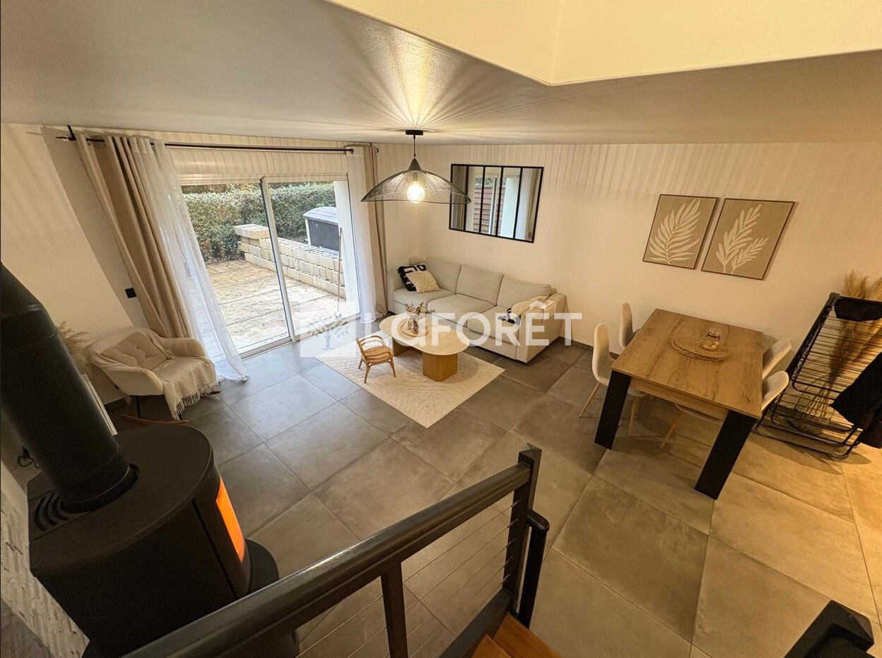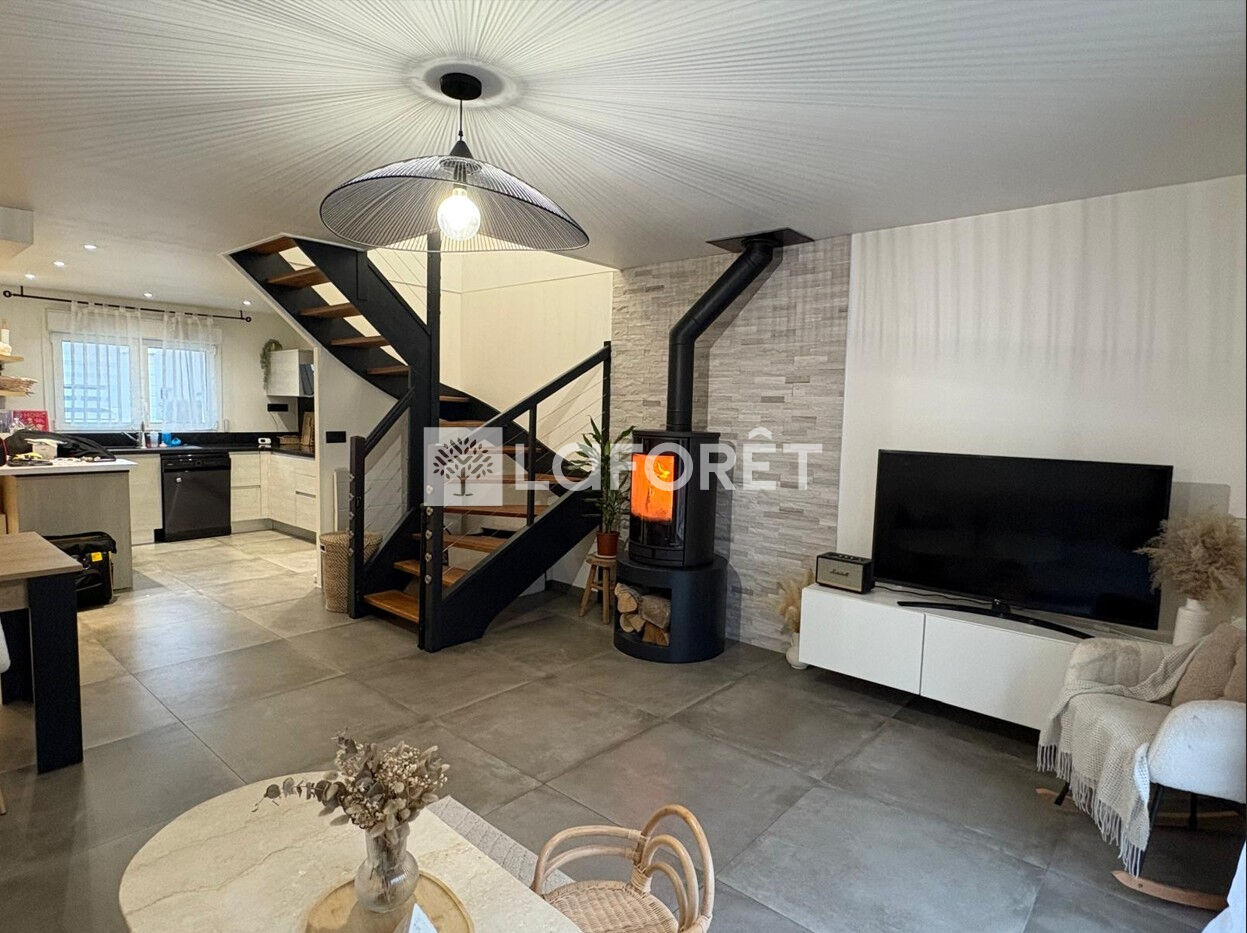Au rez-de-chaussée, vous trouverez un beau séjour avec son poêle à bois, une cuisine américaine aménagée et équipée, WC suspendu indépendants, un garage. À l'étage, vous trouverez trois chambres dont une avec une mezzanine, une salle d'eau avec WC suspendu. Le tout sur un terrain de 135m².