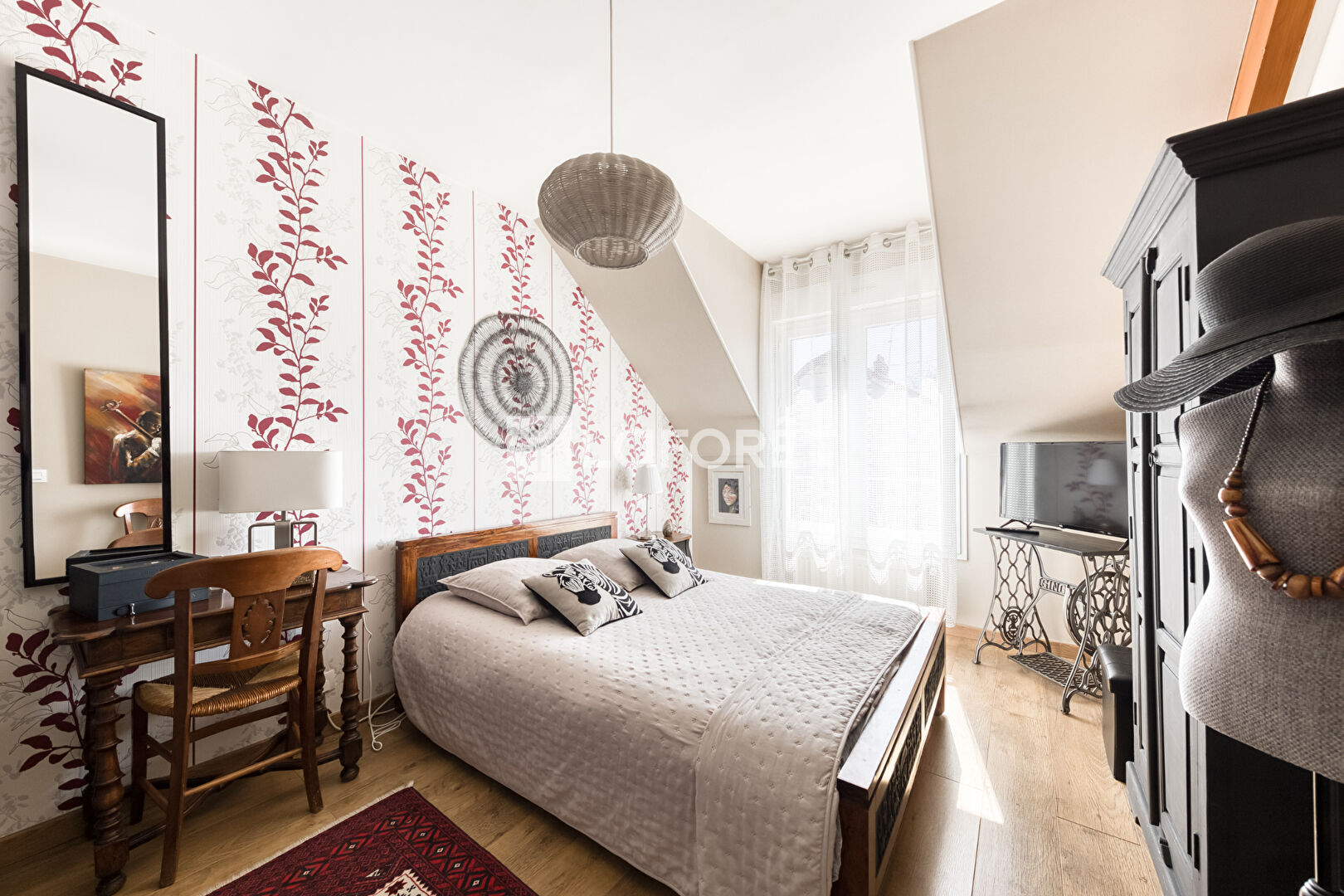 A l'étage : grand palier avec placards, 4 chambres dont une suite parentale avec salle d'eau privative, salle de bains avec douche, W.C. Combles.