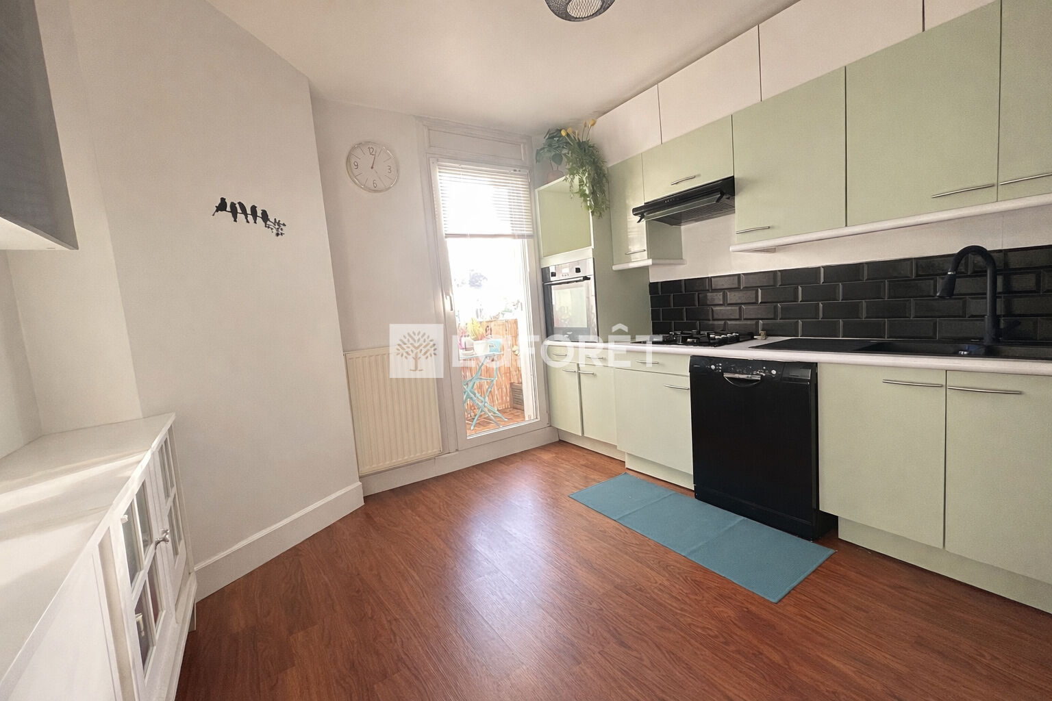La cuisine indépendante, pratique et fonctionnelle, s'ouvre sur un balcon, idéal pour profiter de l'extérieur.