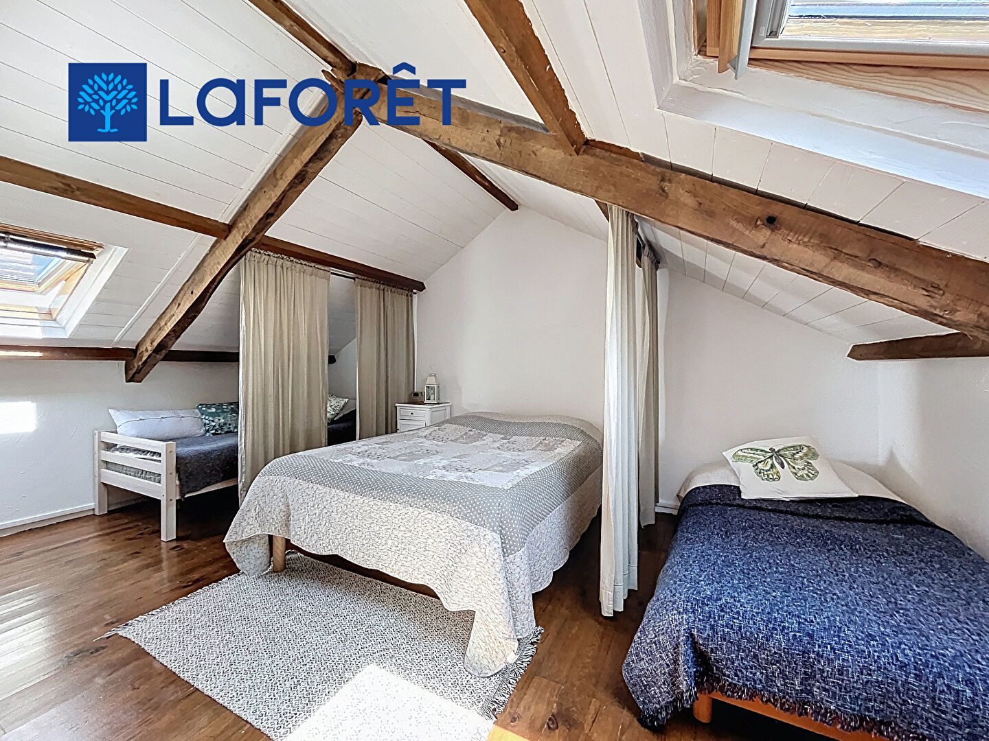 A l'étage, 2 chambres, un bureau, une salle de bains avec wc.