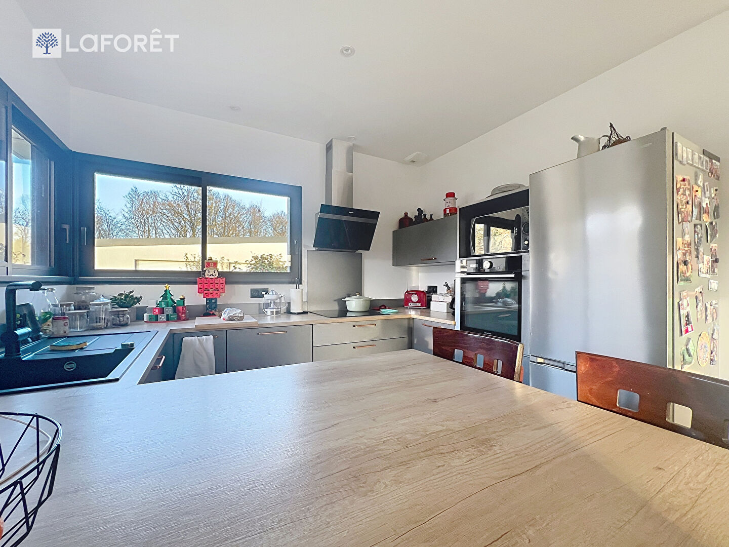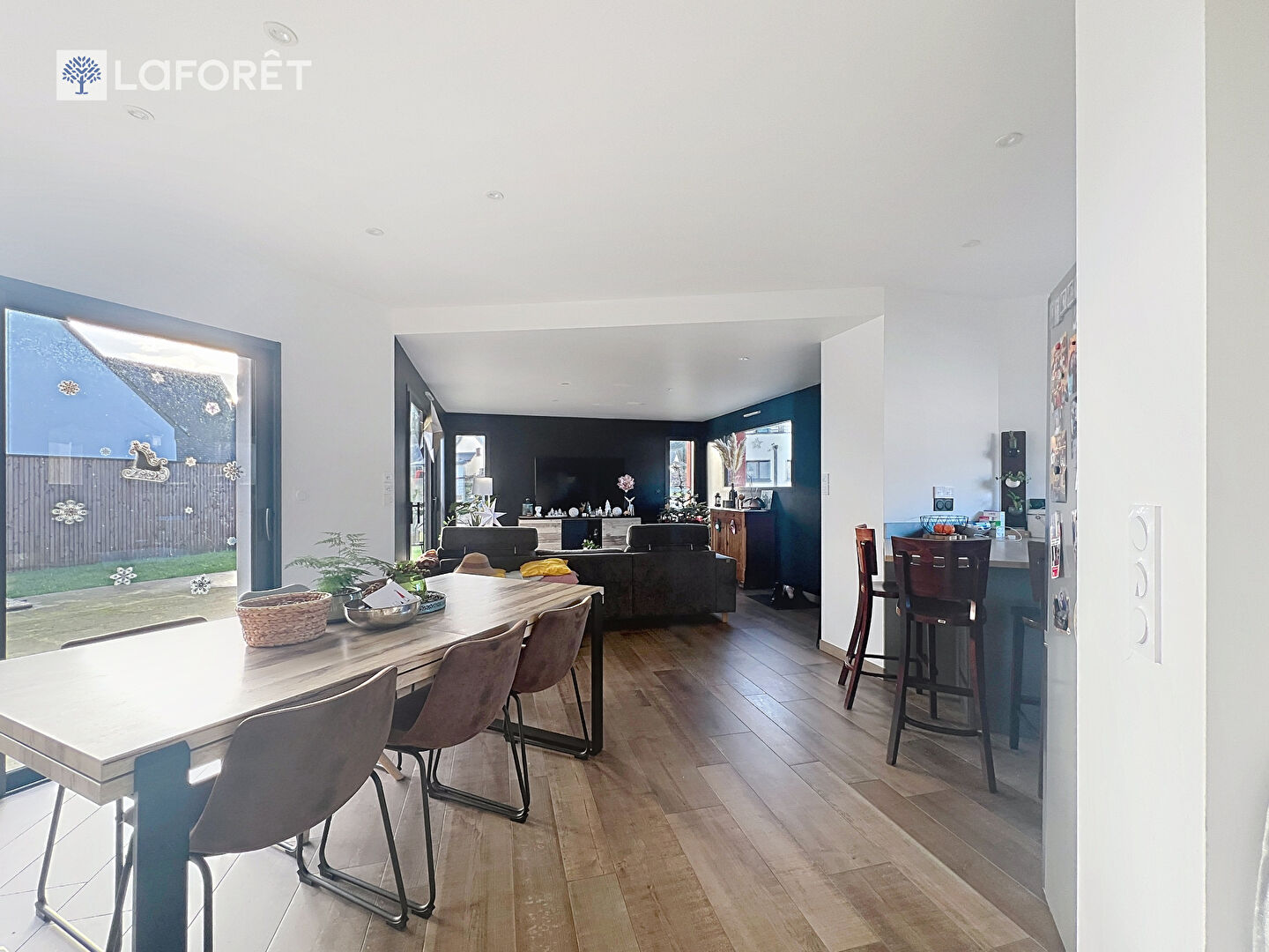Magnifique maison de plain-pied, idéalement orientée. Cette maison est composée d'une pièce de vie lumineuse, d'une partie salon, d'une salle à manger et d'une cuisine aménagée et équipée (haute gamme) ouverte sur l'extérieur. Un couloir qui dessert trois belles chambres avec un placard chacune, une salle d'eau et un w.c indépendant. Une arrière-cuisine/buanderie et un garage.